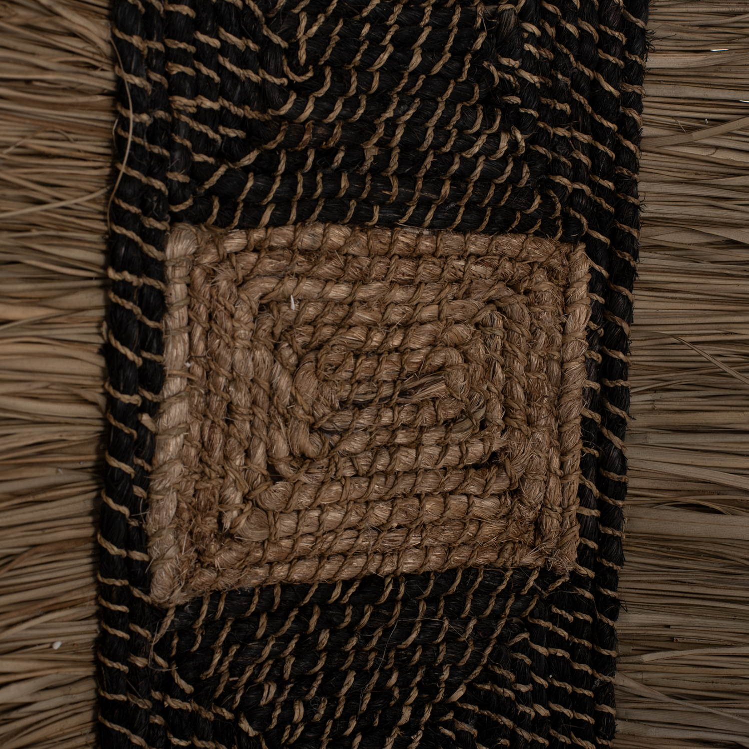 Το διακοσμητικό αυτό είναι κατασκευασμένο από κομμάτια καλαμιάς με ίνες και σχοινί ανακυκλωμένου αμπακά στο εμπρός μέρος. Η κάνναβη της Μανίλας, γνωστή και ως abaca, είναι ένας τύπος ίνας με στιλπνό χρώμα που λαμβάνεται από το Musa textilis (συγγενής των βρώσιμων μπανανών), που ονομάζεται επίσης κάνναβη Μανίλας καθώς και abaca. Το Abaca είναι μια εξαιρετικά ισχυρή ίνα, πολύ ακριβή και έχει πολλές φορές υψηλότερη τιμή από τον ξυλοπολτό. Το όνομα αναφέρεται στην πρωτεύουσα των Φιλιππίνων, έναν από τους κύριους παραγωγούς κάνναβης Μανίλας. Η καλλιέργεια φυτών abaca μπορεί να μειώσει τη διάβρωση, να αυξήσει τη βιοποικιλότητα και να εμπλουτίσει το έδαφος. Τέλος, είναι ανθεκτικό στο νερό και την υγρασία.