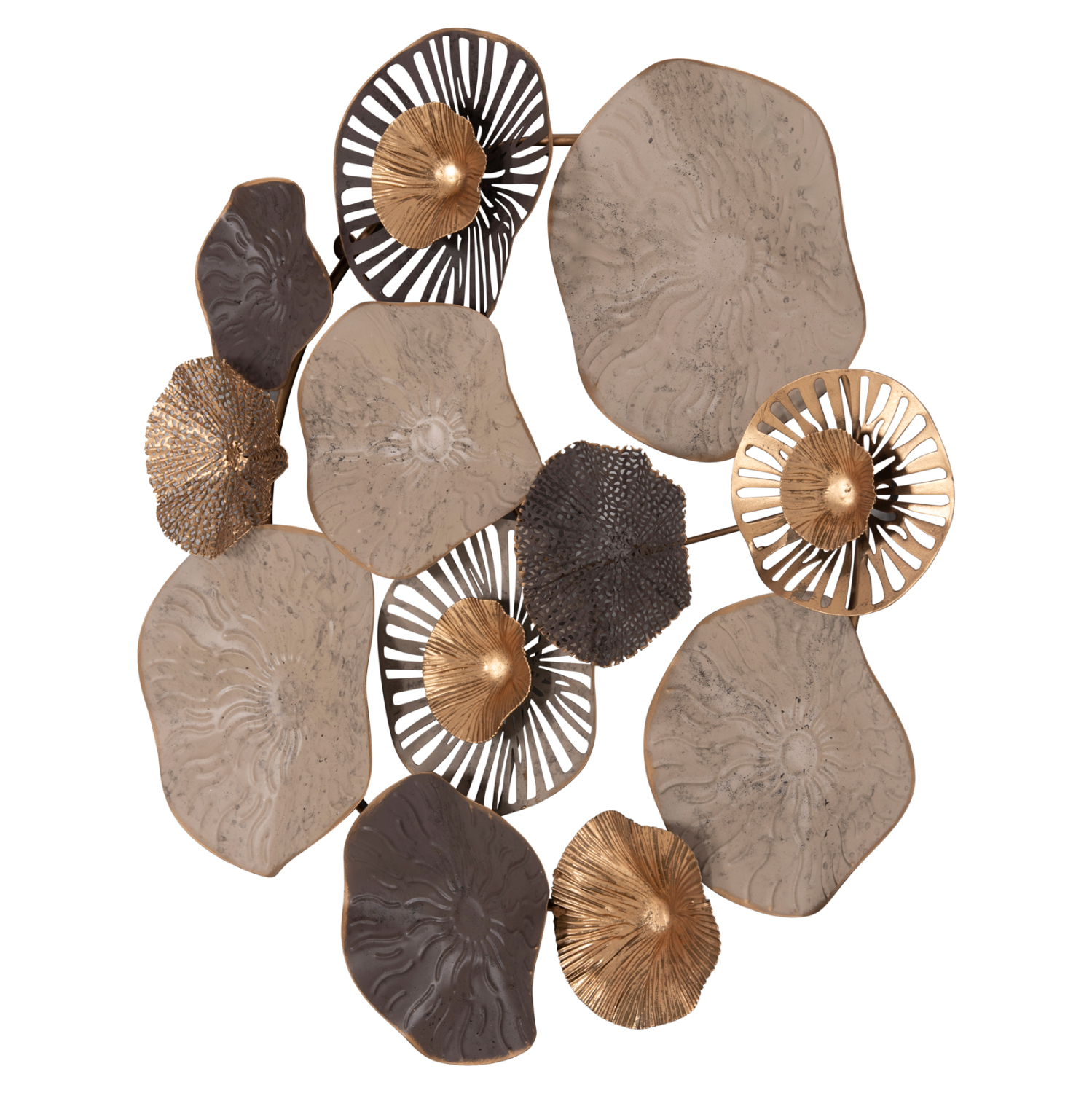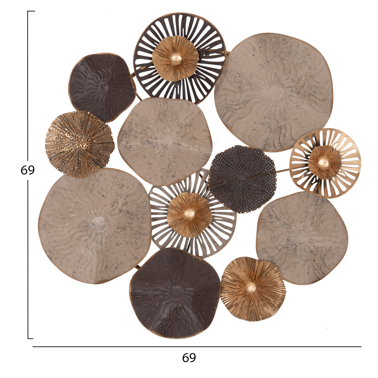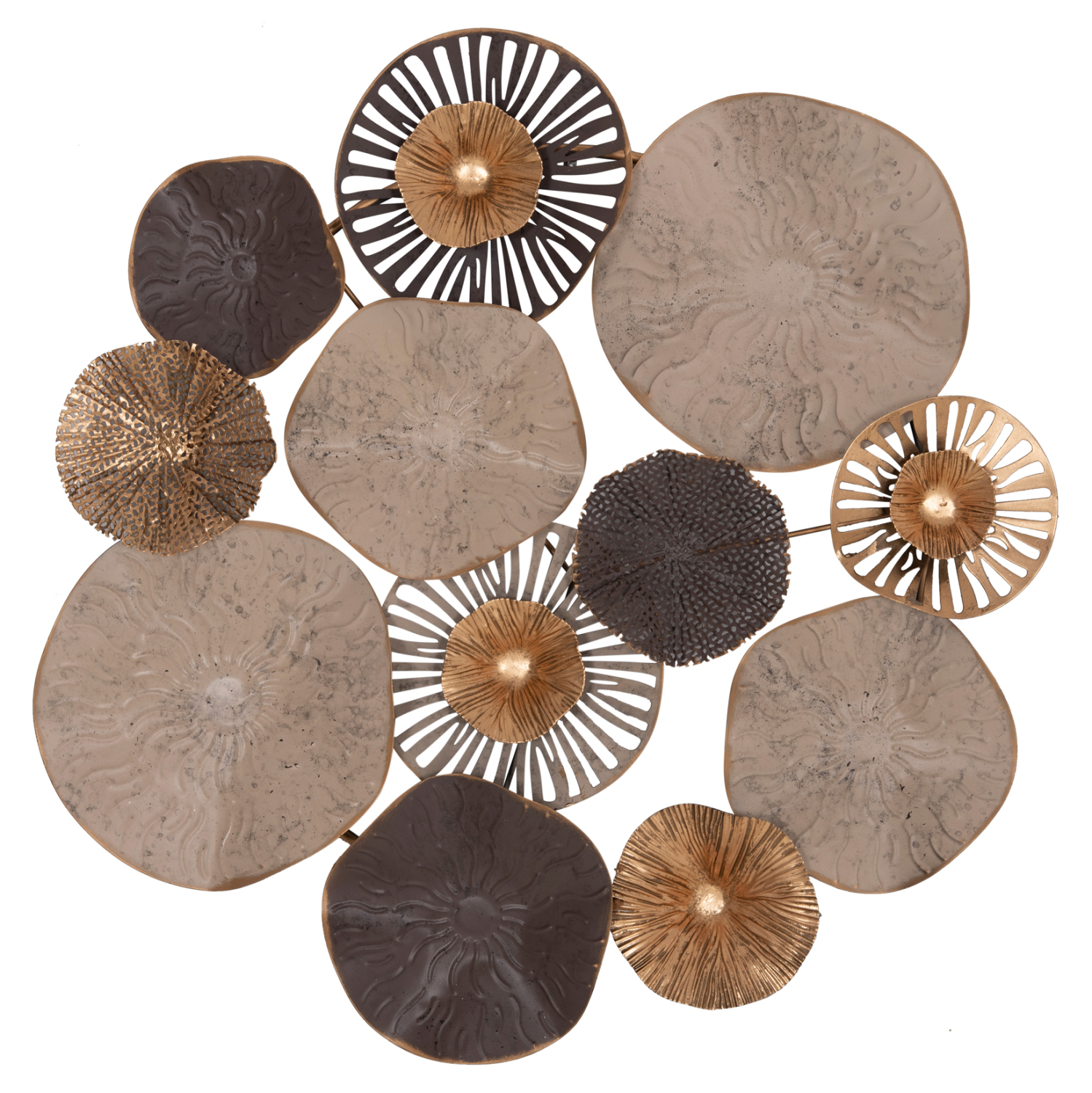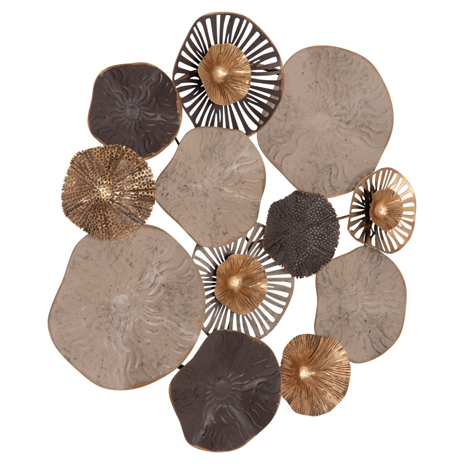 Μεταλλικό διακοσμητικό τοίχου σε καφέ και εκρού απόχρωση με χρυσές λεπτομέρειες.