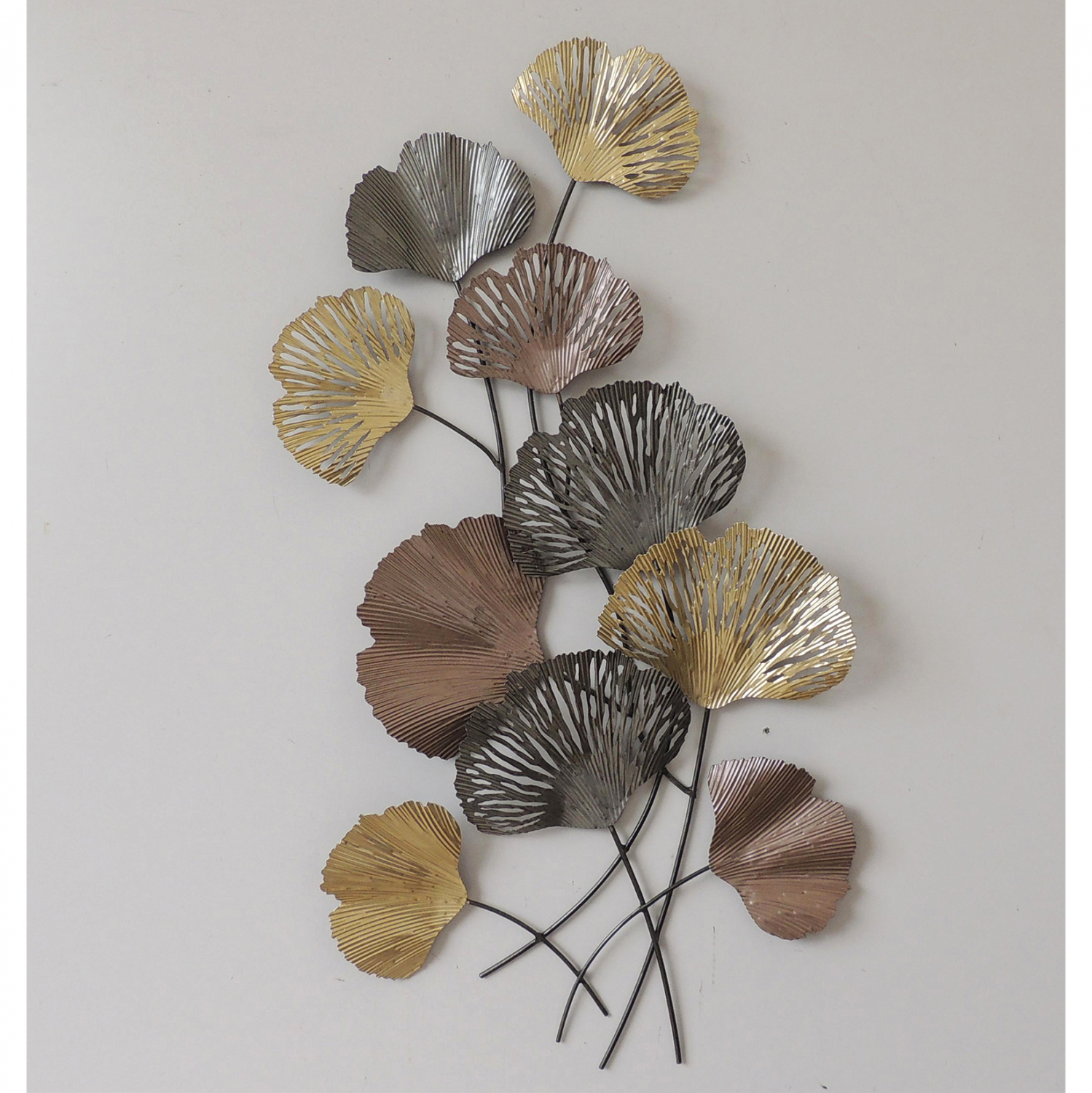 Μεταλλικό διακοσμητικό τοίχου σε ανθρακί απόχρωση με χρυσές και μπρονζέ λεπτομέρειες.
