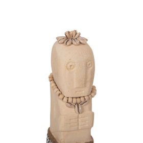 Το επιτραπέζιο διακοσμητικό SUMBA θα δώσει μια άλλη «αύρα» στον χώρο σας. Πρόκειται για ένα μακρόστενο αγαλματίδιο Πολυνησιακής τεχνοτροπίας (μορφή Μοάι), σε ΛΕΥΚΗ απόχρωση, διακοσμημένο με χάντρες και σχοινί από seagrass. Αυτό που κάνει όμως το ΗΜ4308 να ξεχωρίζει είναι η σημειολογία του. Είναι κατασκευασμένο από PARAS STONE, το οποίο στα ελληνικά αποδίδεται ως «τυχερή πέτρα» και λέγεται ότι φέρνει τύχη στον κάτοχό του. Προέρχεται από την Ινδική μυθολογία στην οποία το PARAS STONE είχε την ιδιότητα να μετατρέπει οποιοδήποτε αντικείμενο σε χρυσό.