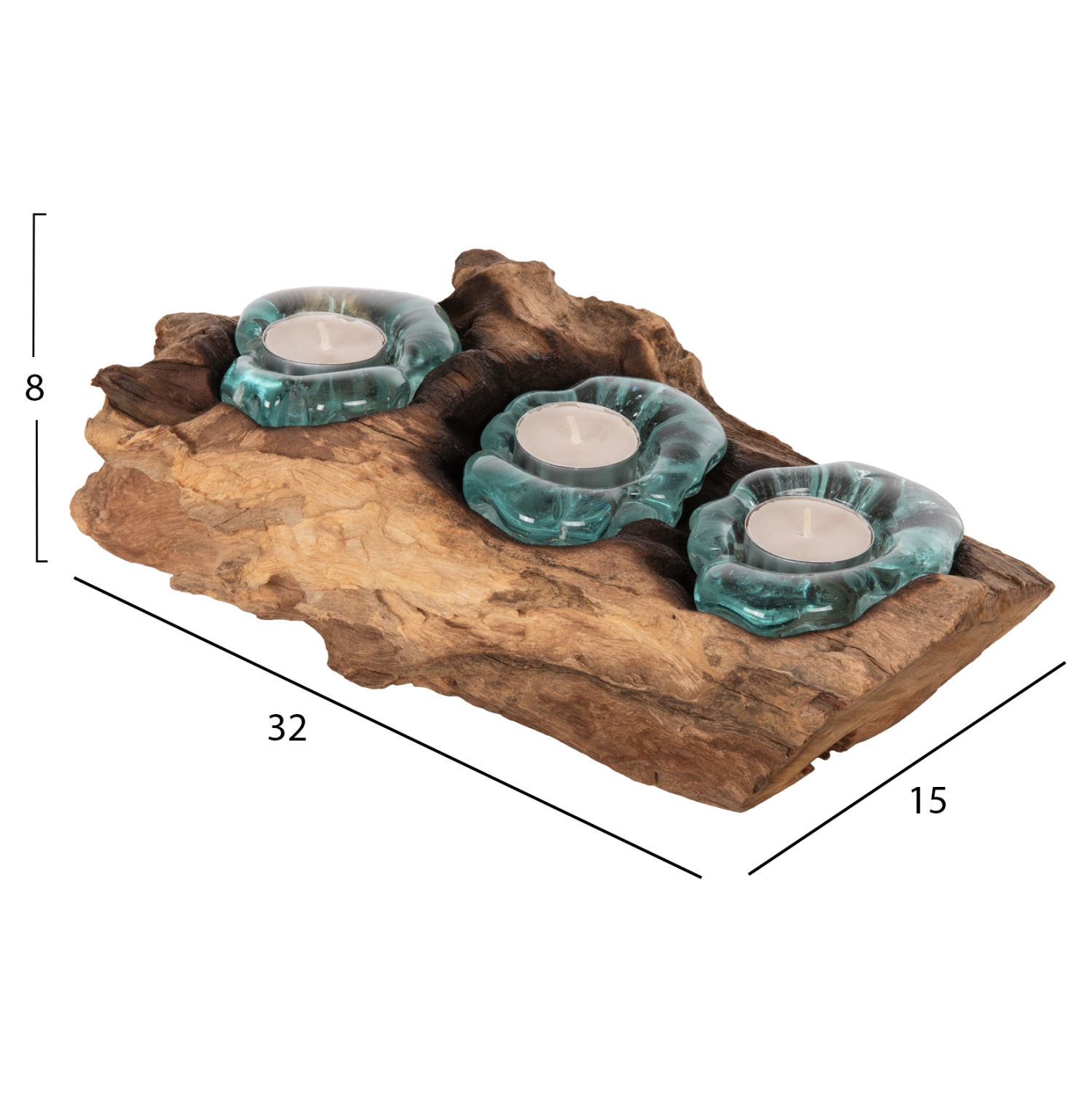 Το επιτραπέζιο διακοσμητικό HM4282 είναι μια βάση για 3 κεράκια ρεσό κατασκευασμένη από μασίφ ξύλο ΤΕΑΚ. Οι βάσεις για τα ρεσό είναι από γυαλί. Οι οπαδοί του ρουστίκ στυλ στην διακόσμηση θα ενθουσιαστούν με αυτή την πρόταση.