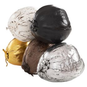 Θέλετε να ξεχωρίσετε τοποθετώντας κάτι μοναδικό στον χώρο σας; Μην διστάσετε να διακοσμήσετε το τραπέζι ή την κονσόλα σας με ένα όμορφο και ξεχωριστό φυσικό διακοσμητικό. Το ΗΜ4326.03 είναι μια ολόκληρη καρύδα σε ΧΡΥΣΟ χρώμα, γυαλισμένη και καταλλήλως επεξεργασμένη για αυτό τον σκοπό. Θα προσφέρει ένα εστιακό σημείο στο σαλόνι σας ή σε όποιο χώρο θέλετε να την τοποθετήσετε, επαγγελματικό ή μη, μαγνητίζοντας τα βλέμματα των επισκεπτών και δίνοντας χαρακτήρα στον χώρο.