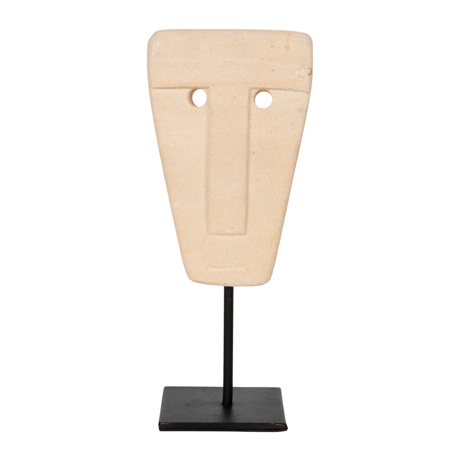 Το επιτραπέζιο διακοσμητικό ΗΜ4312 θα δώσει μια άλλη «αύρα» στον χώρο σας. Πρόκειται για ένα μακρόστενο προσωπείo, σε ΦΥΣΙΚΗ απόχρωση, τοποθετημένο σε ένα ΜΑΥΡΟ μεταλλικό stand. Αυτό που κάνει όμως το ΗΜ4312 να ξεχωρίζει είναι η σημειολογία του. Είναι κατασκευασμένο από PARAS STONE, το οποίο στα ελληνικά αποδίδεται ως «τυχερή πέτρα» και λέγεται ότι φέρνει τύχη στον κάτοχό του. Προέρχεται από την Ινδική μυθολογία στην οποία το PARAS STONE είχε την ιδιότητα να μετατρέπει οποιοδήποτε αντικείμενο σε χρυσό.