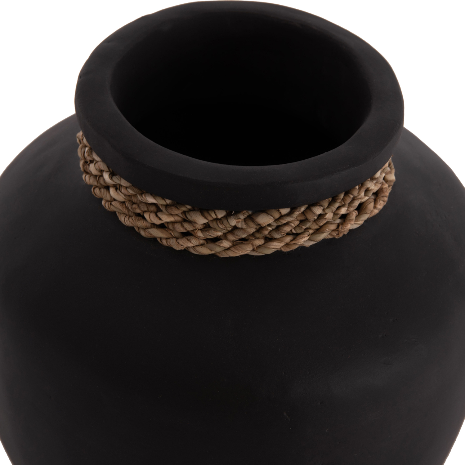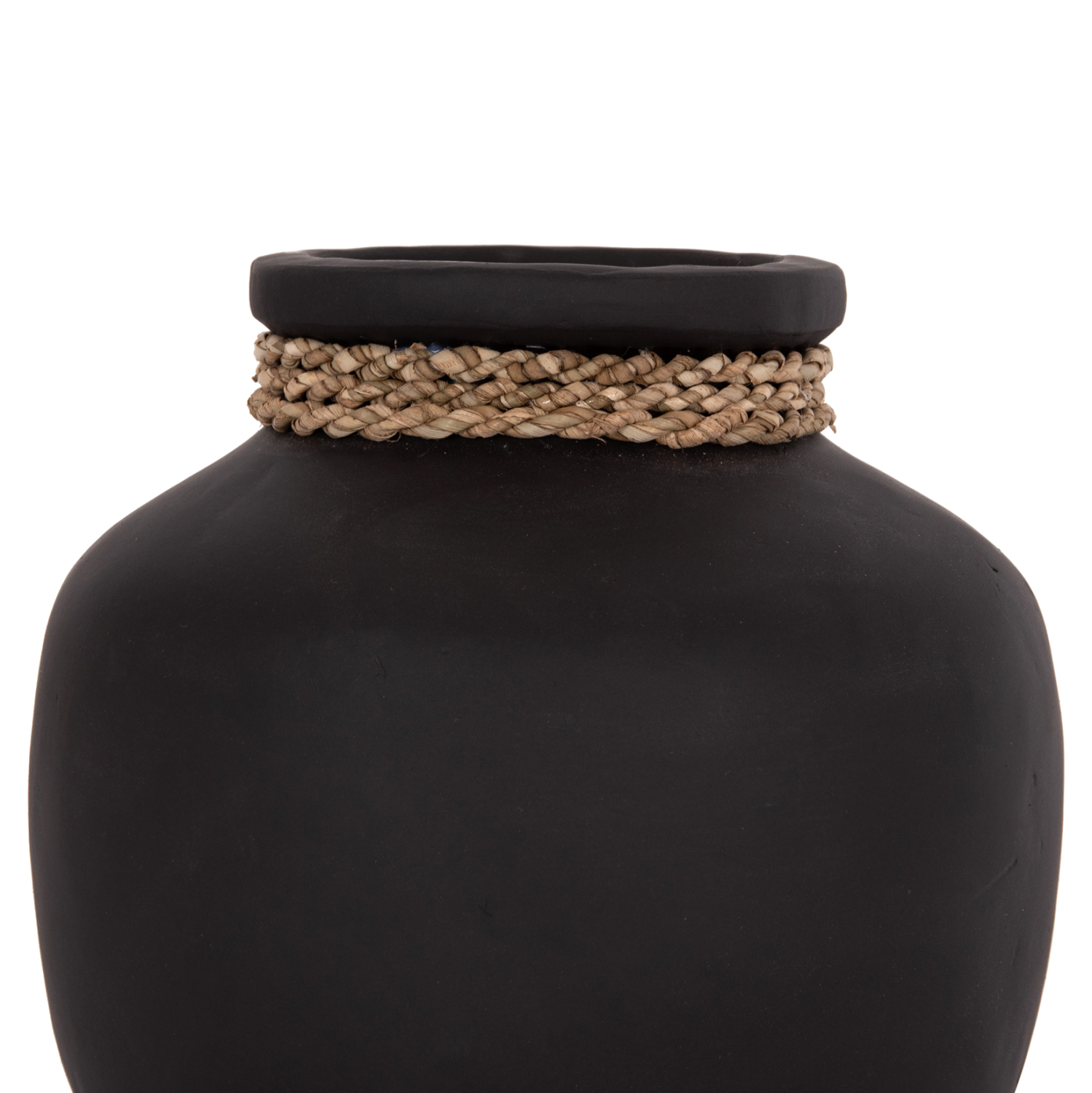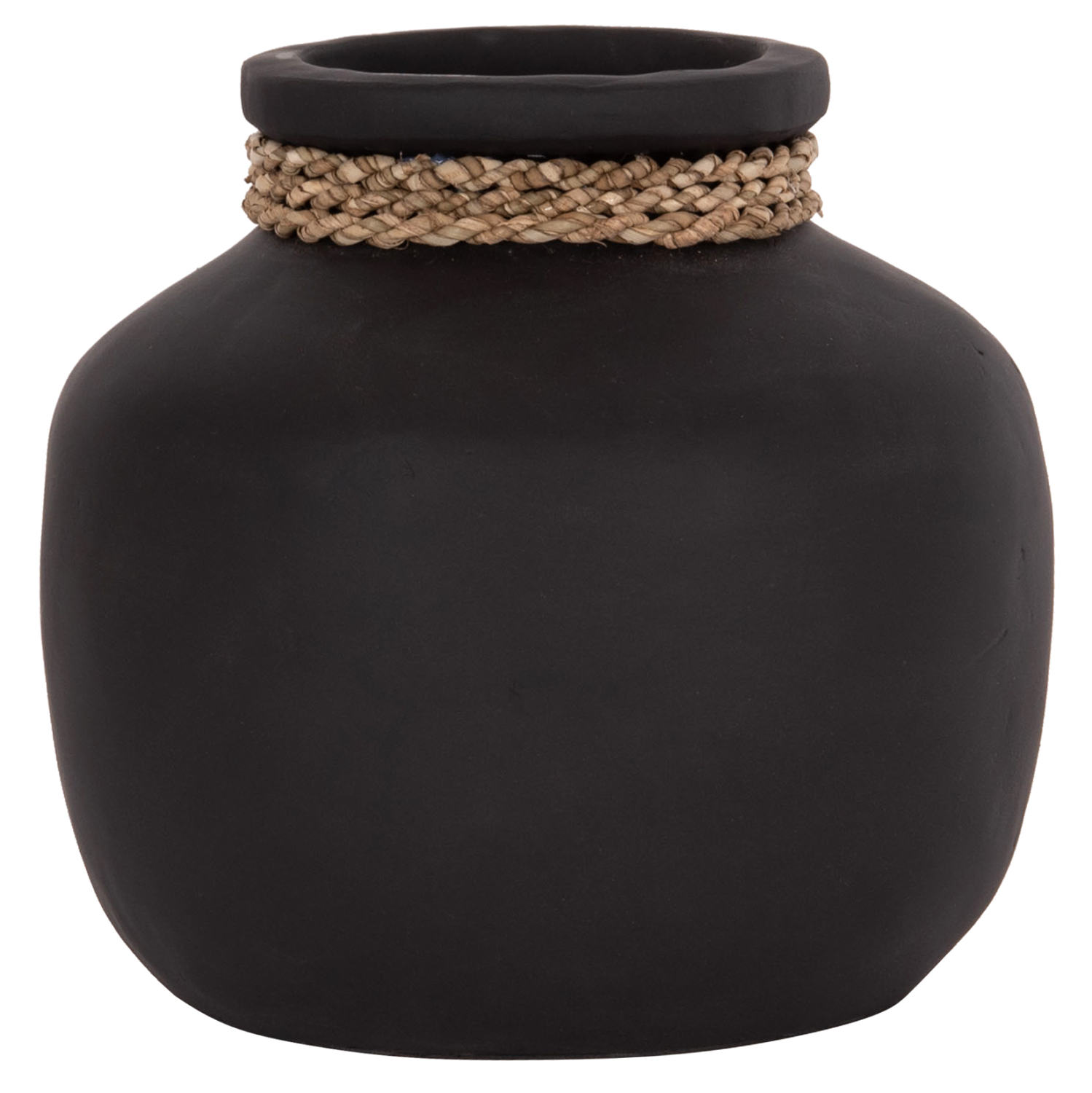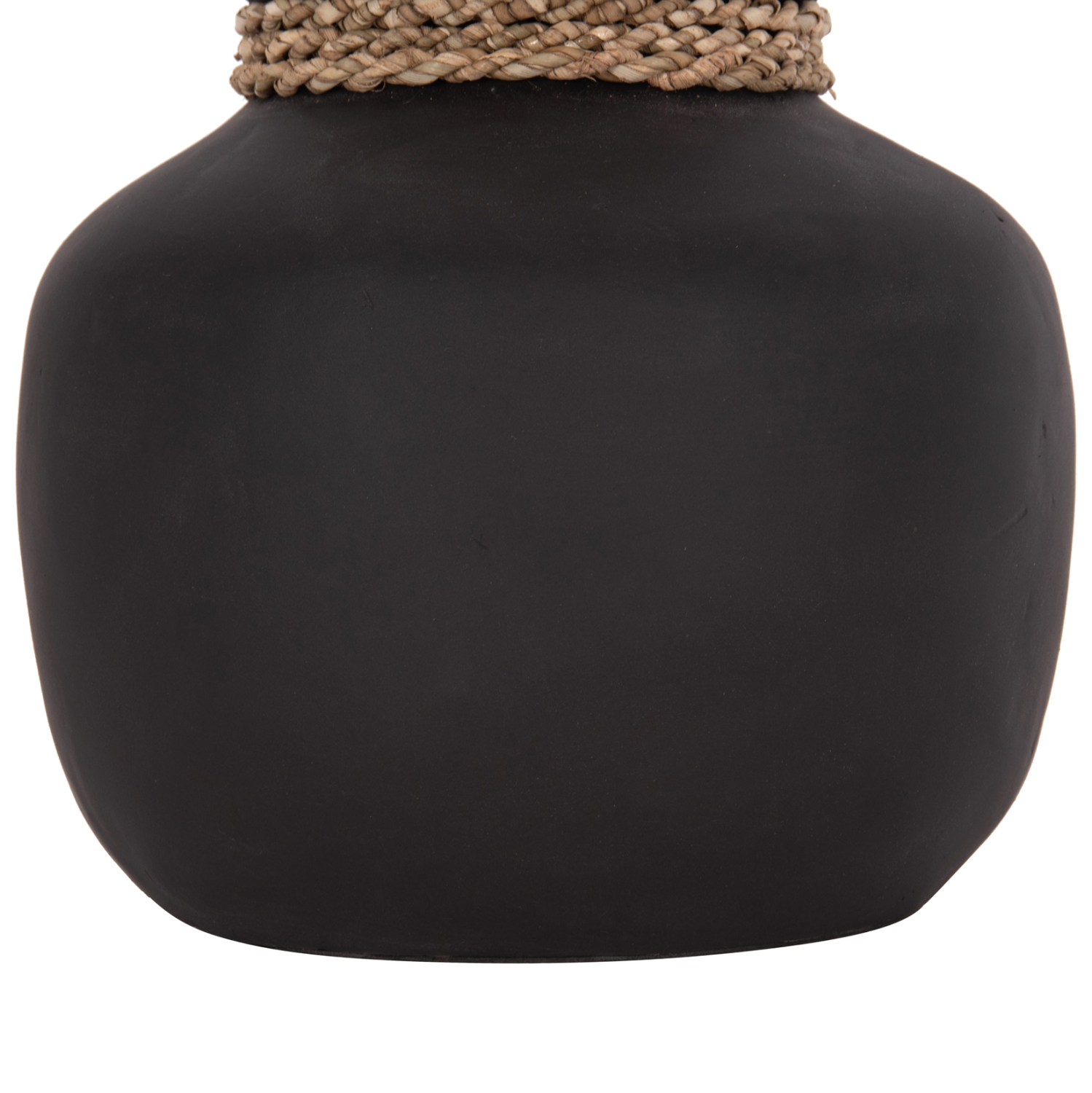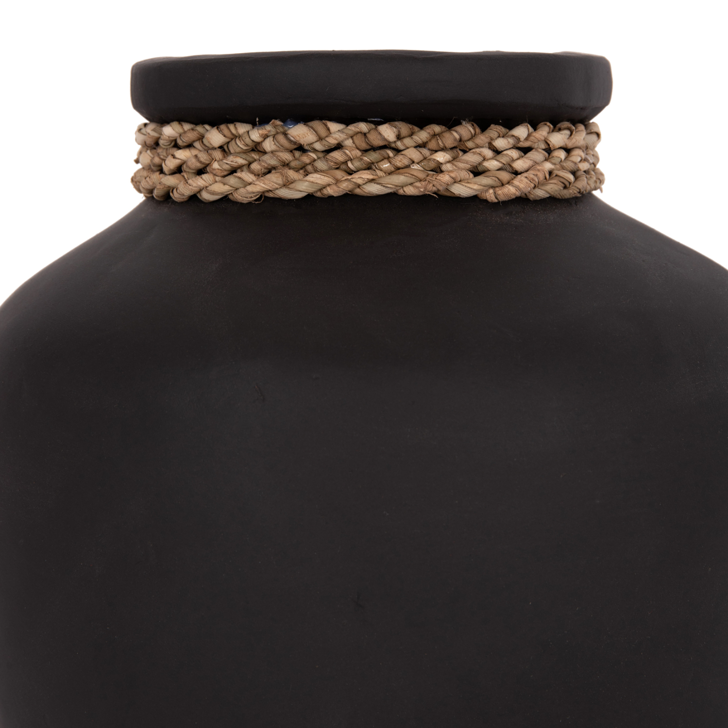 Το επιτραπέζιο χειροποίητο διακοσμητικό βάζο CAMMER είναι κατασκευασμένο εξολοκλήρου από τερακότα σε ΜΑΥΡΟ χρώμα ενώ διαθέτει διακοσμητική πλέξη από seagrass περιμετρικά στον «λαιμό» του βάζου. Ιδανικό για πληθώρα χώρων, τόσο για το σπίτι, όσο και για επαγγελματικούς χώρους.