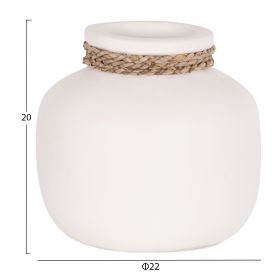 Το επιτραπέζιο χειροποίητο διακοσμητικό βάζο CAMMER είναι κατασκευασμένο εξολοκλήρου από τερακότα σε ΛΕΥΚΟ χρώμα ενώ διαθέτει διακοσμητική πλέξη από seagrass περιμετρικά στον «λαιμό» του βάζου. Ιδανικό για πληθώρα χώρων, τόσο για το σπίτι, όσο και για επαγγελματικούς χώρους.