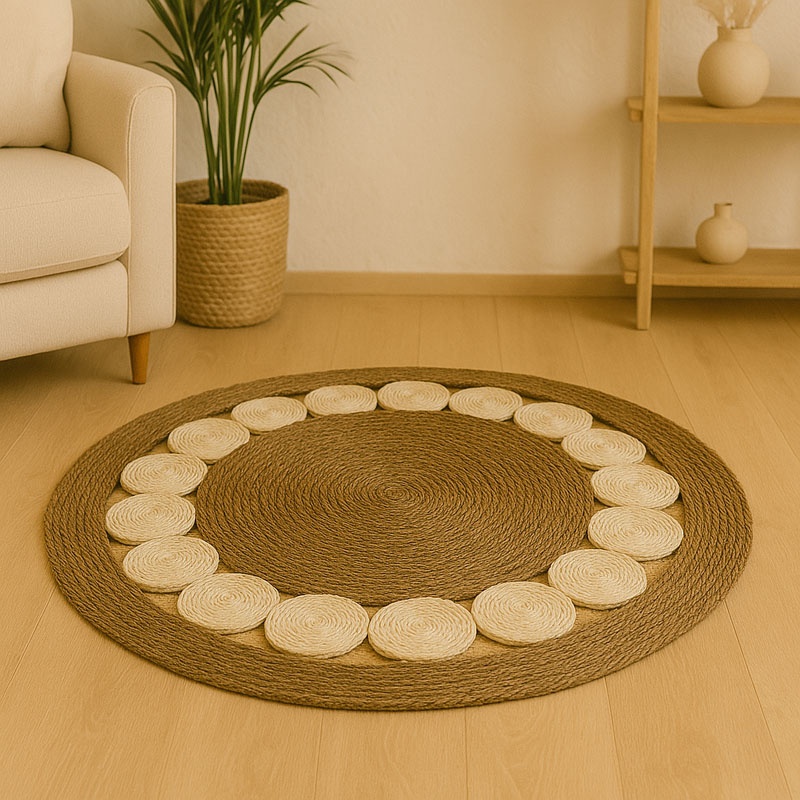 - Κατασκευή από cattail flower και σχοινί εξαιρετικής αντοχής. Το "cattail flower" αναφέρεται στο άνθος του καλαμιού, που είναι μια πολύ γνωστή υπαίθρια φυτεία σε πολλά μέρη του κόσμου.Το κυρίαρχο υλικό, το καλάμι, δημιουργεί μια φυσική αίσθηση ενώ παράλληλα διατηρεί την ανθεκτικότητα. Το πλέγμα των καλαμιών παρέχει μια οργανική υφή που κάνει κάθε χαλί μοναδικό. Η επιφάνεια του χαλιού ενισχύεται από το σχοινί, το οποίο πλέκεται με το καλάμι δίνοντας έναν εξαιρετικά ανθεκτικό χαρακτήρα.