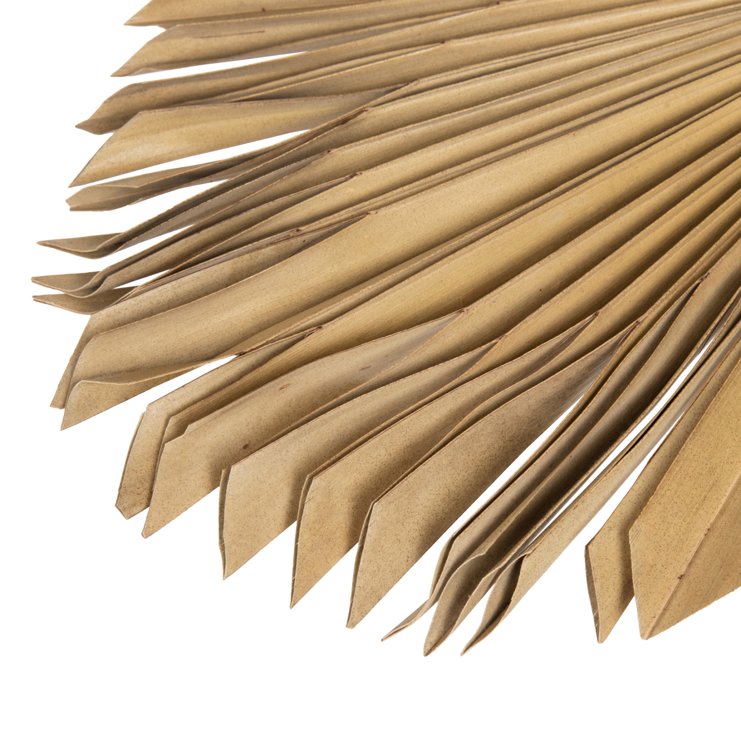 Αυτό το διακοσμητικό τοίχου είναι κατασκευασμένο από αποξηραμένες ίνες φοίνικα, που είναι γνωστός και ως Επιτραπέζιος Φοίνικας ή Φοίνικας βεντάλια. Αυτός είναι ένας πολύ ελκυστικός και κομψός φοίνικας με μεγάλα, λαμπερά φύλλα σε σχήμα βεντάλιας και αγκαθωτούς μίσχους. Φύεται στη Νοτιοανατολική Ασία και τη Νέα Γουινέα.