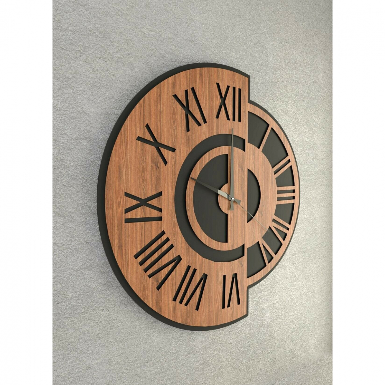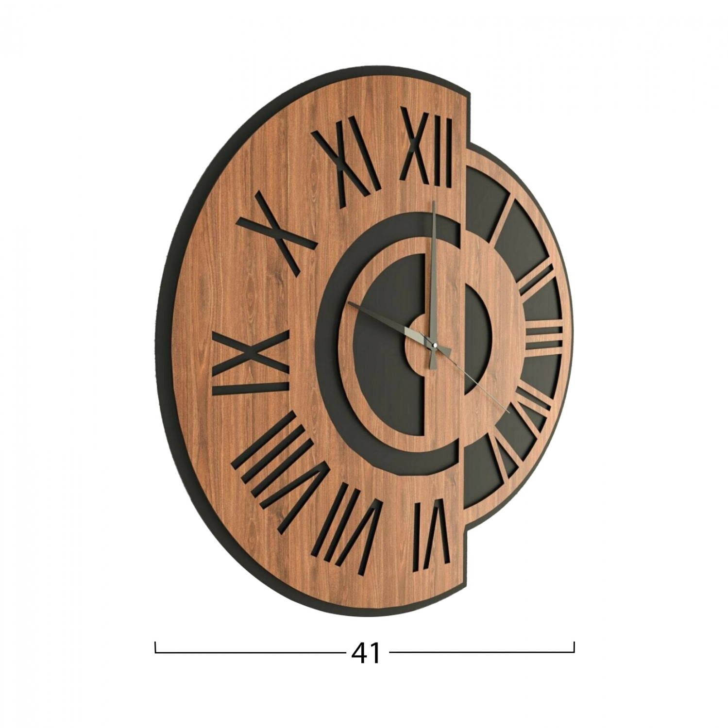Ρολόι τοίχου σε απόχρωση μαύρο και καρυδί.