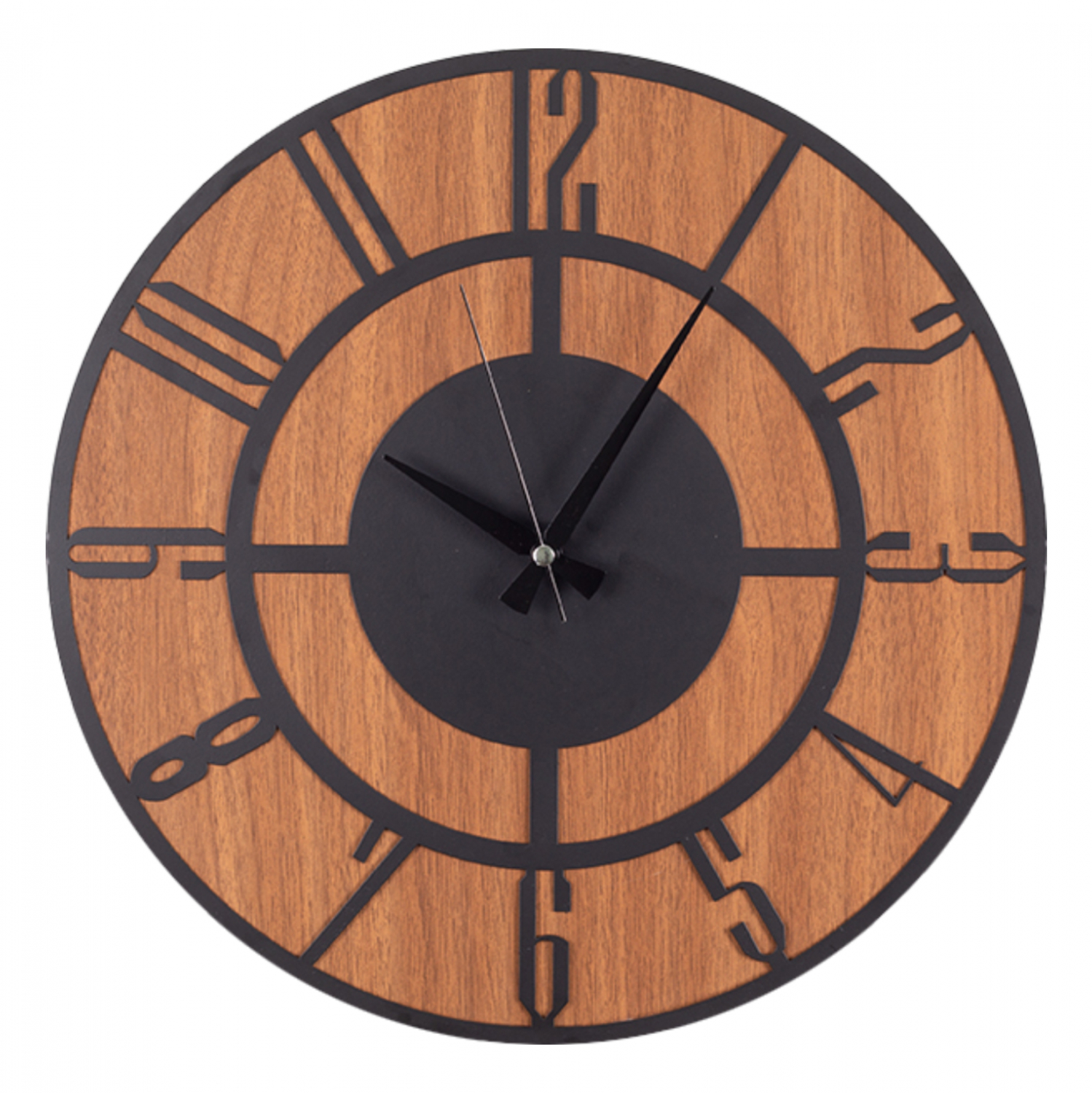 Ρολόι τοίχου σε απόχρωση μαύρο και καρυδί.
