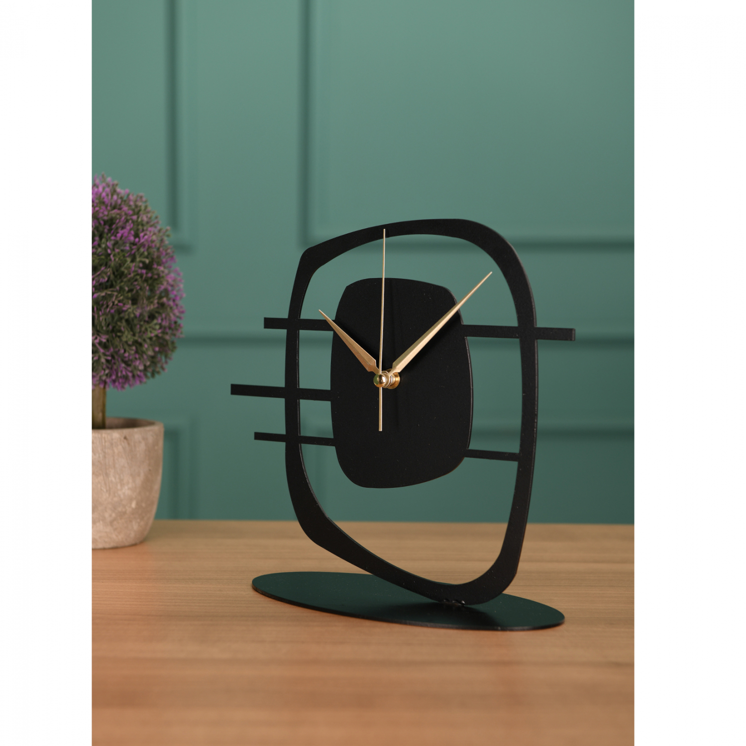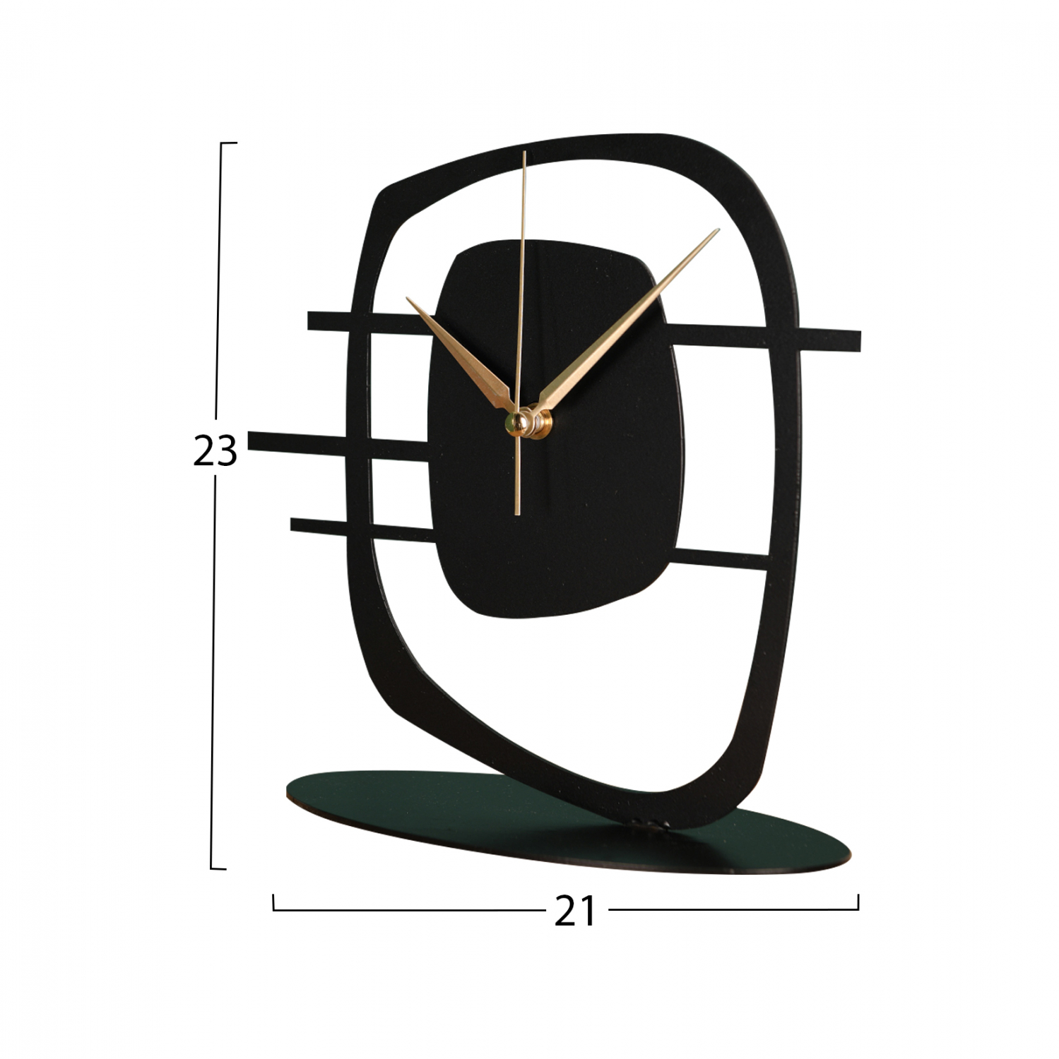 Ρολόι επιτραπέζιο σε μαύρη απόχρωση με χρυσές λεπτομέρειες στους δείκτες.