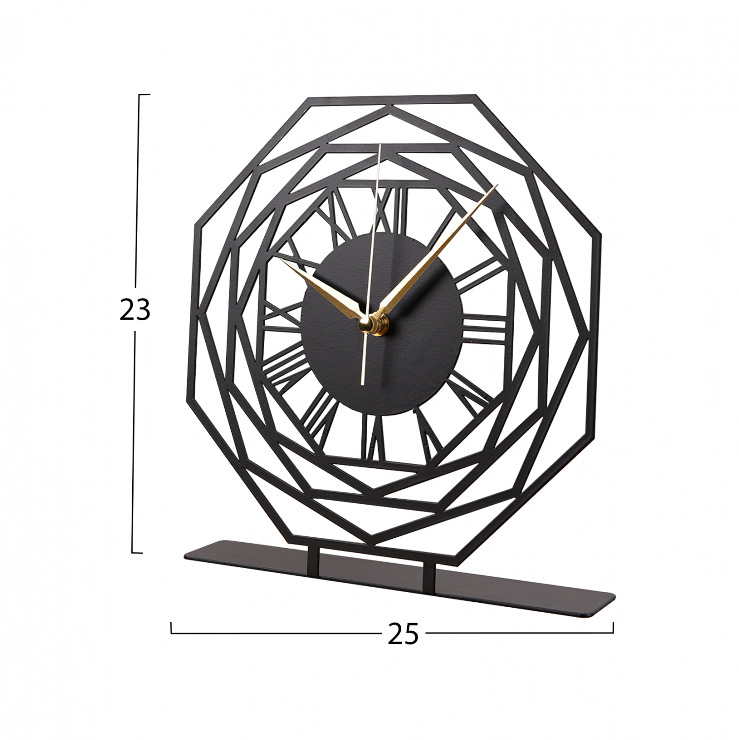 Ρολόι επιτραπέζιο σε μαύρη απόχρωση με χρυσές λεπτομέρειες στους δείκτες.