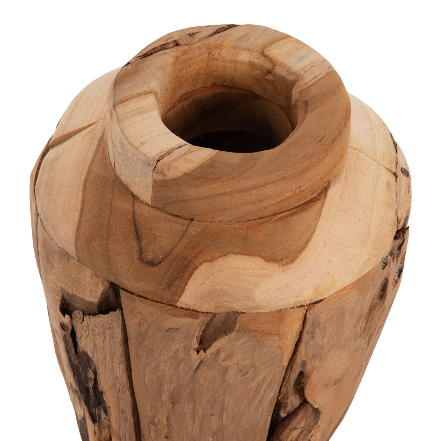 Το βάζο είναι κατασκευασμένο από ανακυκλωμένα ξύλα ΤΕΑΚ. Το ΤΕΑΚ είναι ο πιο δημοφιλής τύπος σκληρού ξύλου. Είναι χρώματος κίτρινο έως σκούρο καφέ, εξαιρετικά βαρύ, υψηλής αντοχής, ανθεκτικό στις καιρικές συνθήκες, ανθεκτικό στο σκέβρωμα και δεν αποσυντίθεται. Συχνά, τα νερά του ξύλου του είναι έντονα και σε ευθεία. Χρησιμοποιείται για πληθώρα κατασκευών εσωτερικού και εξωτερικού χώρου.