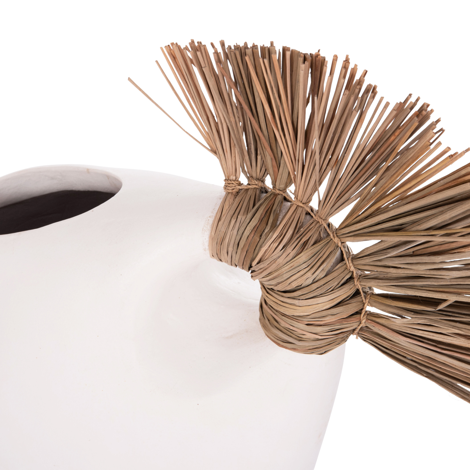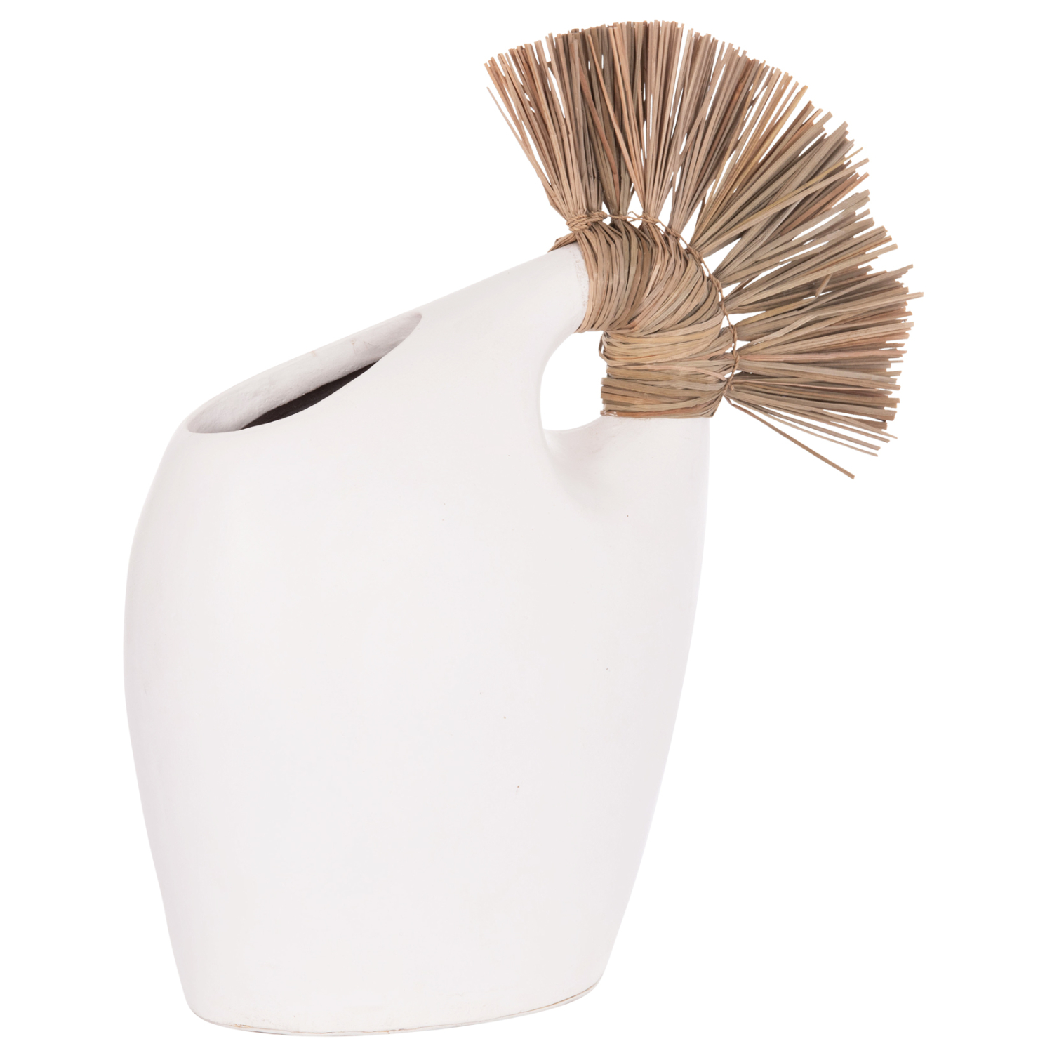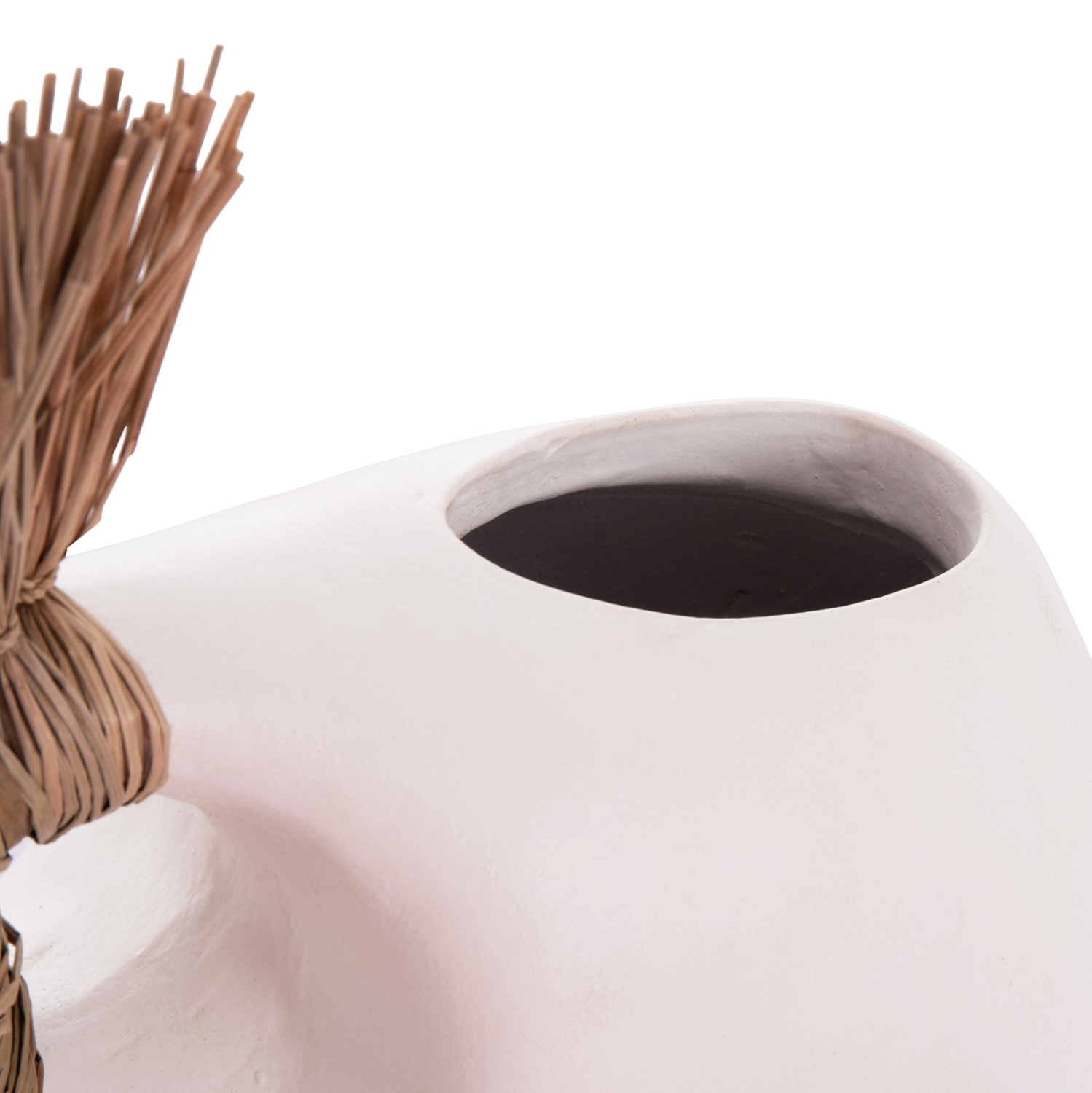 Το επιτραπέζιο χειροποίητο διακοσμητικό βάζο ALICA2 είναι ένα πολύ ιδιαίτερο διακοσμητικό στοιχείο για κάθε χώρο. Είναι κατασκευασμένο εξολοκλήρου από τερακότα σε ΛΕΥΚΟ χρώμα, ενώ διαθέτει και ένα χερούλι επενδυμένο με αποξηραμένο grass, και ένα φαρδύ στόμιο.
