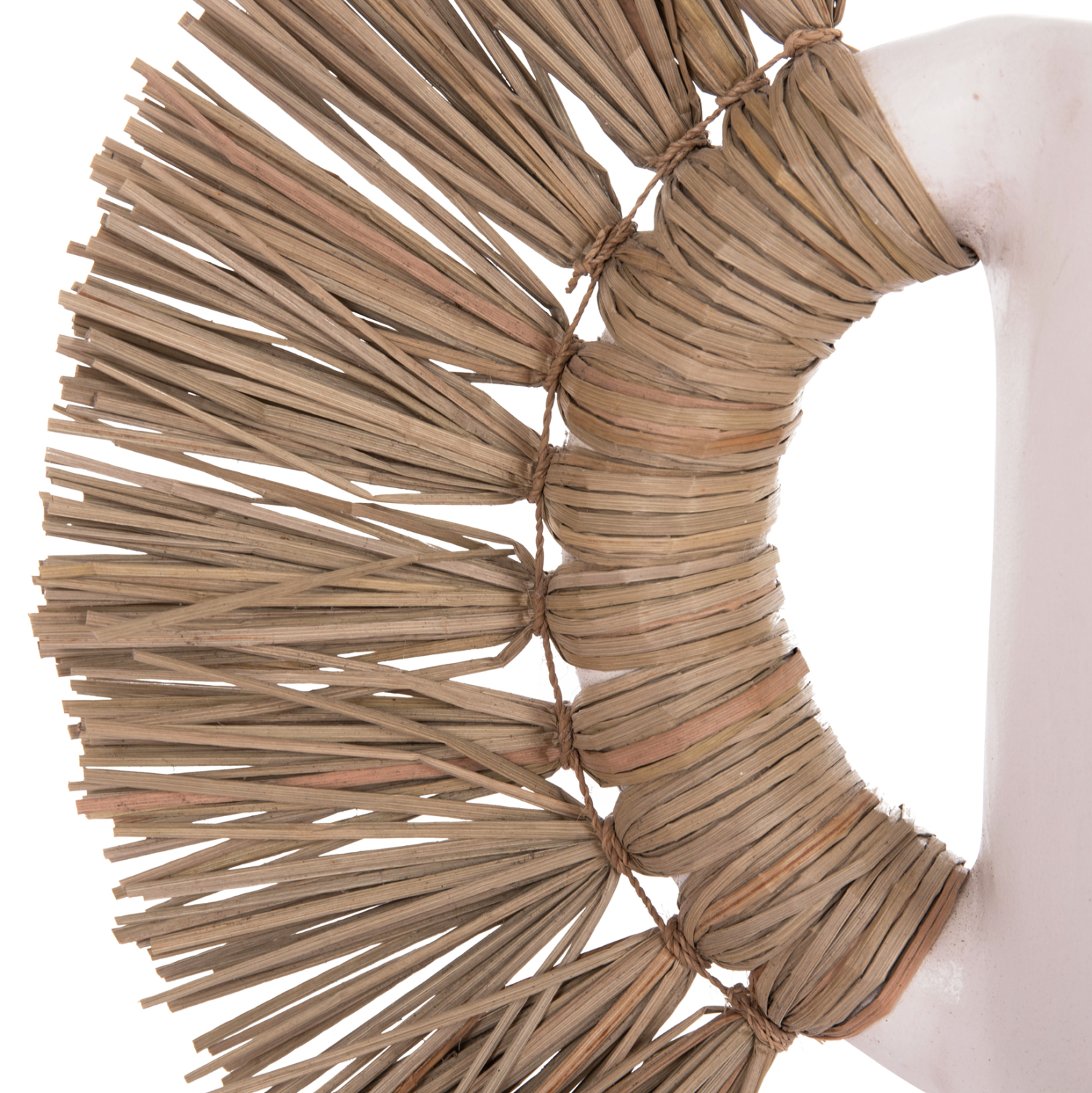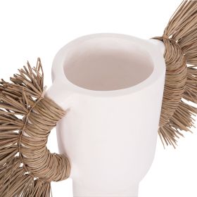Το επιτραπέζιο χειροποίητο διακοσμητικό βάζο ALICA είναι ένα πολύ ιδιαίτερο διακοσμητικό στοιχείο για κάθε χώρο. Είναι κατασκευασμένο εξολοκλήρου από τερακότα σε ΛΕΥΚΟ χρώμα, ενώ διαθέτει και δύο χερούλια επενδυμένα με αποξηραμένο grass, και ένα σχετικά φαρδύ στόμιο.