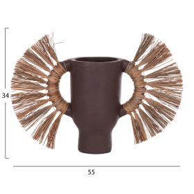 Το επιτραπέζιο χειροποίητο διακοσμητικό βάζο ALICA είναι ένα πολύ ιδιαίτερο διακοσμητικό στοιχείο για κάθε χώρο. Είναι κατασκευασμένο εξολοκλήρου από τερακότα σε ΣΟΚΟΛΑΤΙ χρώμα, ενώ διαθέτει και δύο χερούλια επενδυμένα με αποξηραμένο grass, και ένα σχετικά φαρδύ στόμιο.