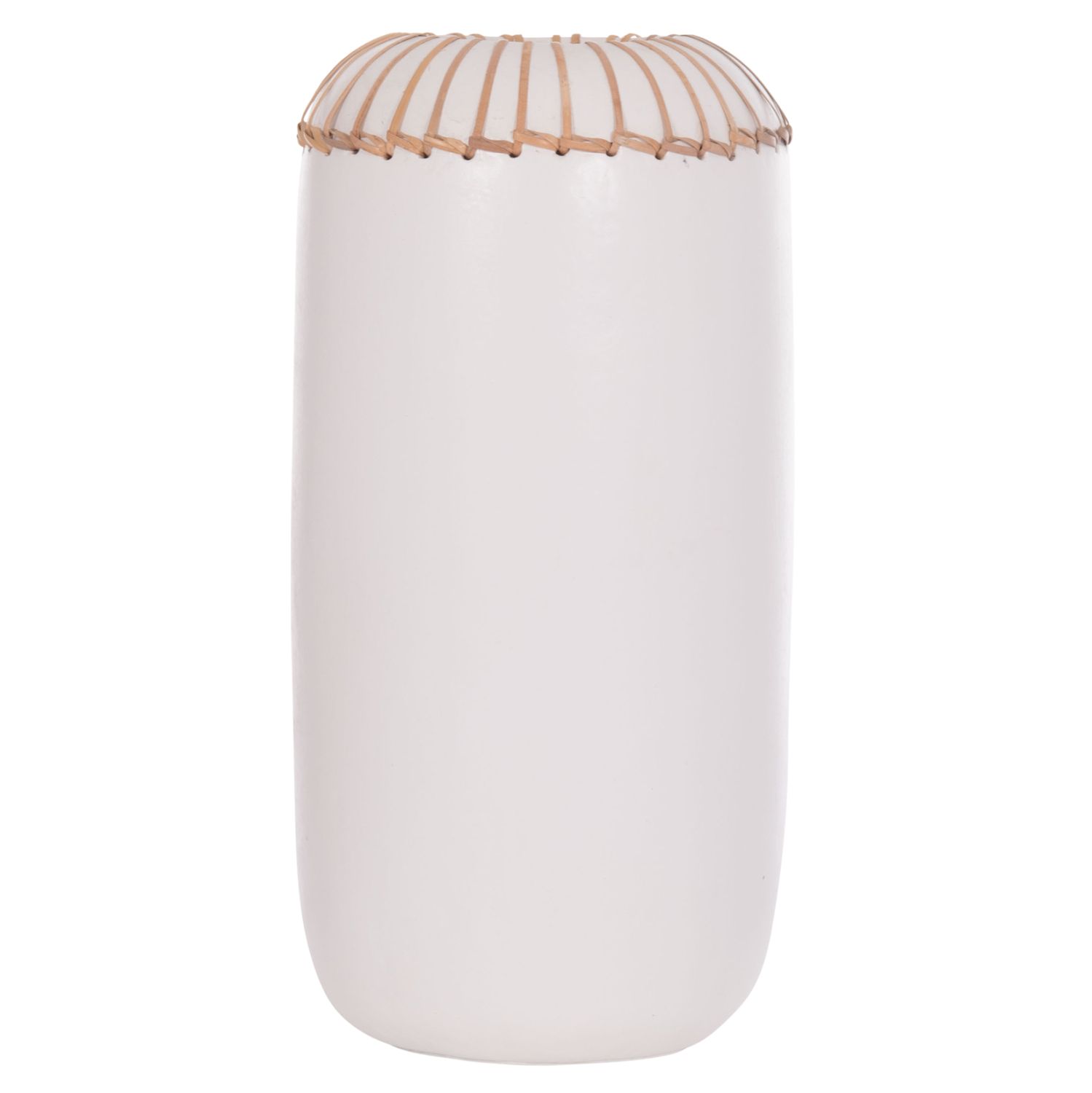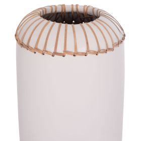 Το χειροποίητο επιτραπέζιο διακοσμητικό βάζο LENNOX είναι ένα όμορφο διακοσμητικό στοιχείο για κάθε χώρο. Είναι κατασκευασμένο εξολοκλήρου από τερακότα σε ΛΕΥΚΟ χρώμα ενώ το στόμιο είναι διακοσμημένο με μια πλέξη από φυσικό rattan. Ιδανικό για πληθώρα χρήσεων και χώρων.