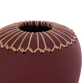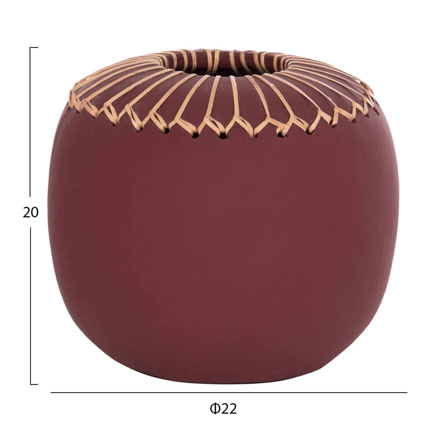 Το χειροποίητο επιτραπέζιο διακοσμητικό βάζο LENNOX είναι ένα όμορφο διακοσμητικό στοιχείο για κάθε χώρο. Είναι σχετικά κοντό αλλά φαρδύ και κατασκευασμένο εξολοκλήρου από τερακότα σε εντυπωσιακό ΒΥΣΣΙΝΙ χρώμα ενώ το στόμιο είναι διακοσμημένο με μια πλέξη από φυσικό rattan. Ιδανικό για πληθώρα χρήσεων και χώρων.