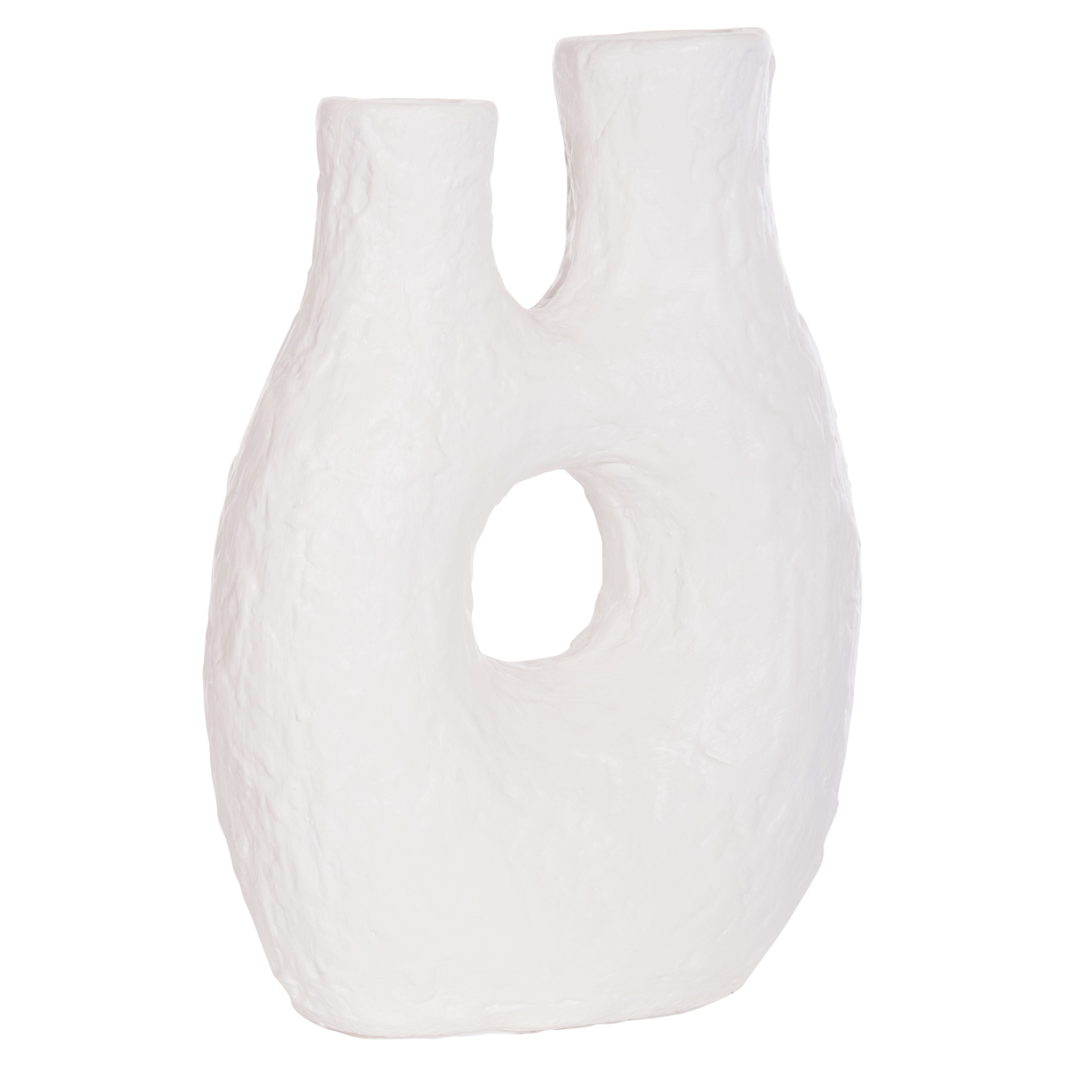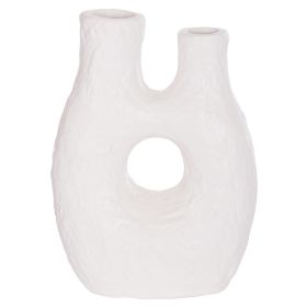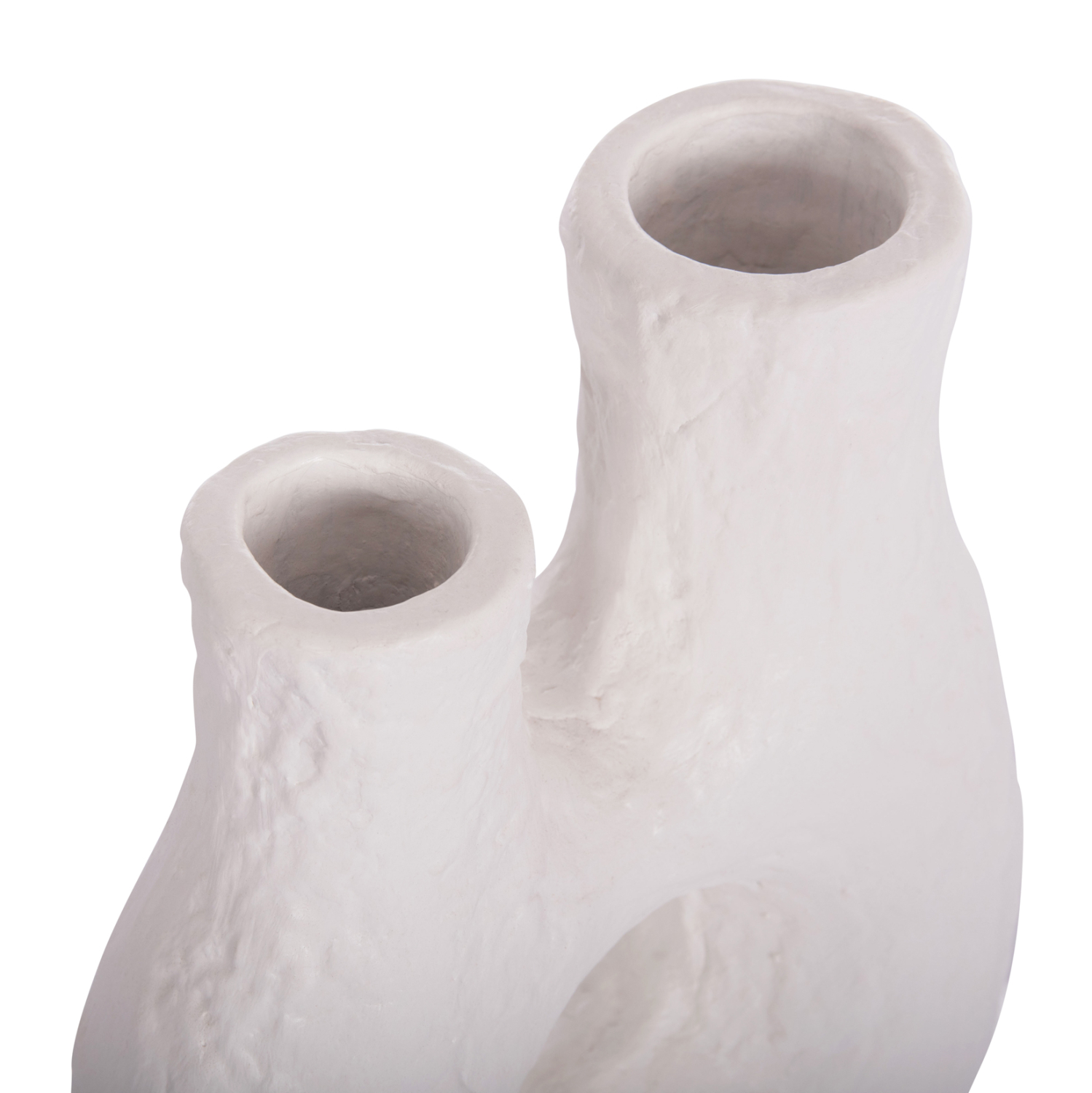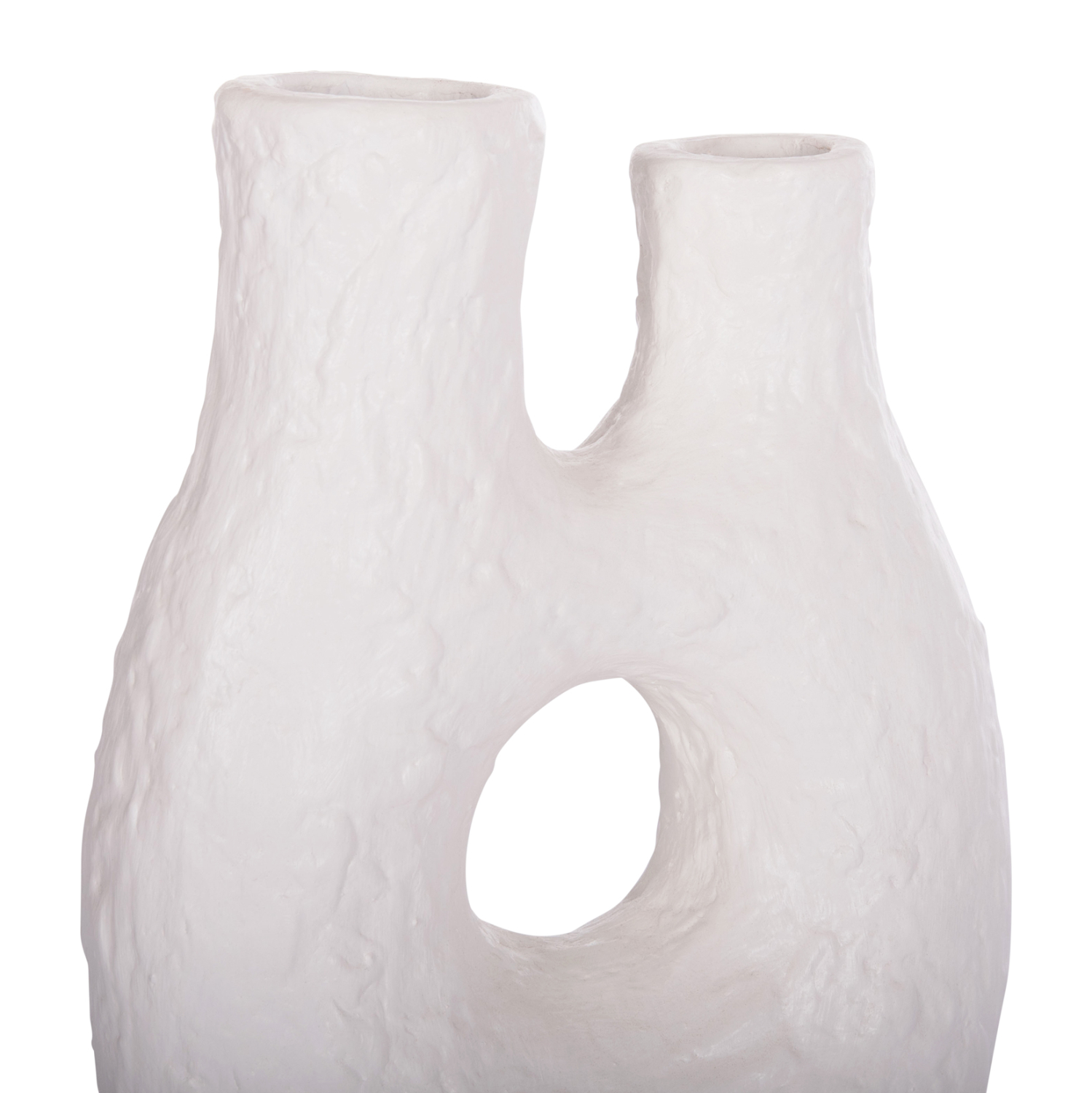 Το χειροποίητο επιτραπέζιο διακοσμητικό βάζο NAMENTIS με δύο στόμια είναι ένα πολύ ιδιαίτερο διακοσμητικό στοιχείο για κάθε χώρο. Είναι κατασκευασμένο εξολοκλήρου από τερακότα με σαγρέ υφή σε ΛΕΥΚΟ χρώμα, ακολουθώντας την σύγχρονη τάση στην εσωτερική διακόσμηση. Ιδανικό για πληθώρα χρήσεων και χώρων.