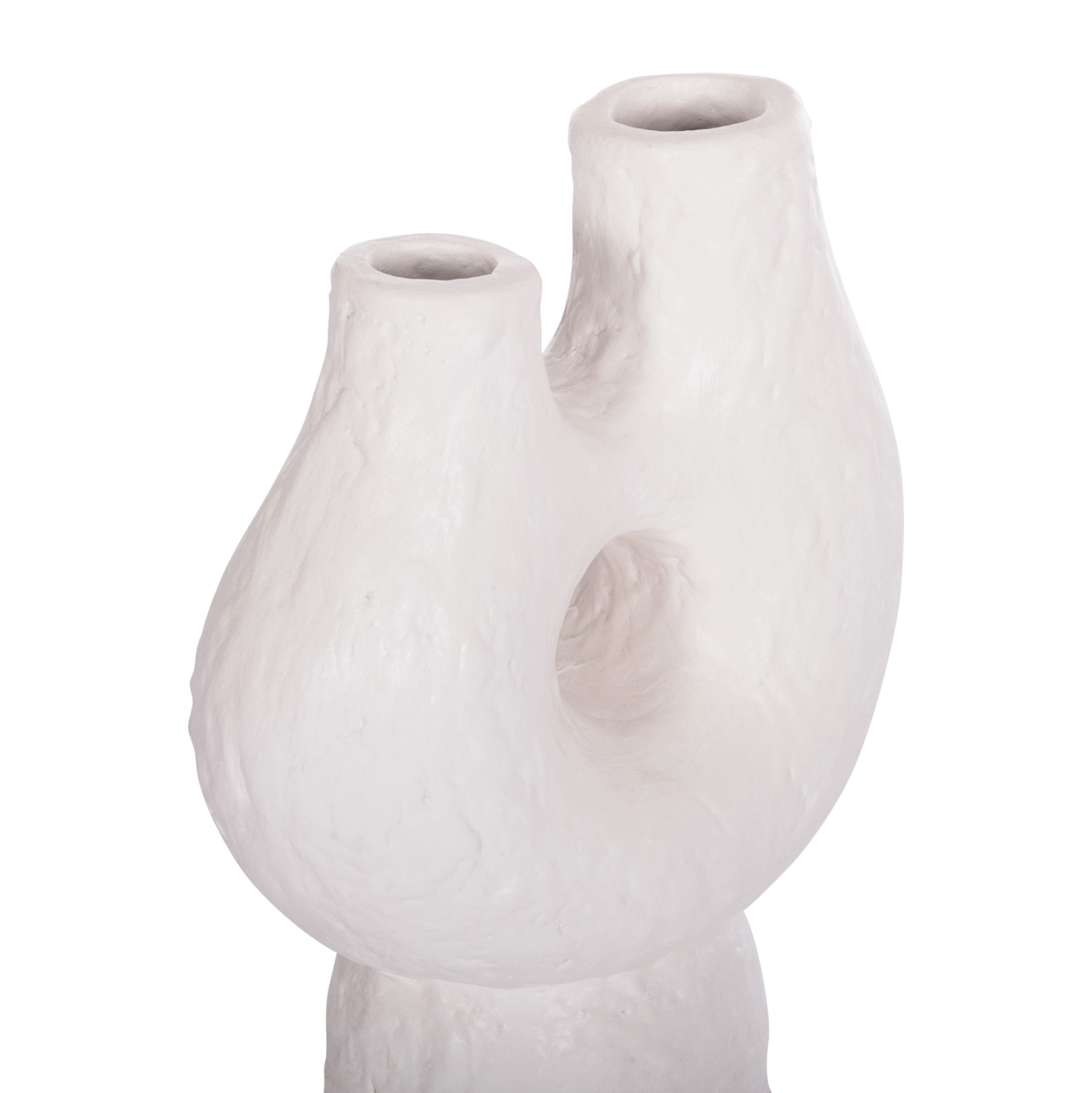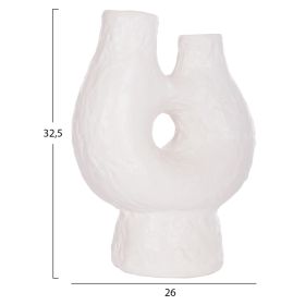 Το χειροποίητο επιτραπέζιο διακοσμητικό βάζο NAMENTIS με δύο στόμια είναι ένα πολύ ιδιαίτερο διακοσμητικό στοιχείο για κάθε χώρο. Είναι κατασκευασμένο εξολοκλήρου από τερακότα με σαγρέ υφή σε ΛΕΥΚΟ χρώμα, ακολουθώντας την σύγχρονη τάση στην εσωτερική διακόσμηση. Ιδανικό για πληθώρα χρήσεων και χώρων.