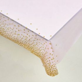 Τραπεζομάντηλο πάρτι πλαστικό ροζ με χρυσό πουά. Διαστάσεις 1.37χ2.74 εκ. Παράδοση σε 5-7 εργάσιμες μέρες.