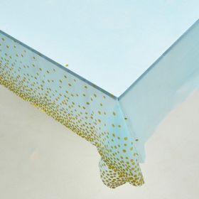 Τραπεζομάντηλο πάρτι πλαστικό σιέλ με χρυσό πουά. Διαστάσεις 1.37χ2.74 εκ. Παράδοση σε 5-7 εργάσιμες μέρες.