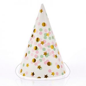 Καπέλο πάρτι λευκό με πολύχρωμο πουά και αστέρια. Παράδοση σε 5-7 εργάσιμες μέρες. Η τιμή αφορά τα 6 τεμάχια.