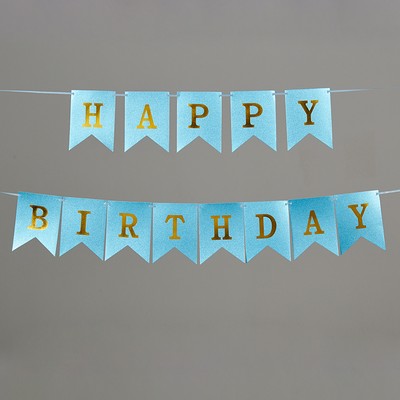 Γιρλάντα happy birthday σε γαλάζιο χρώμα με χρυσά γράμματα. Διάσταση 3μ. Παράδοση σε 5-7 εργάσιμες μέρες. ΝΚ421