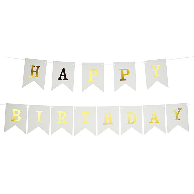 Γιρλάντα happy birthday σε λευκό χρώμα με χρυσά γράμματα. Διάσταση 3μ. Παράδοση σε 5-7 εργάσιμες μέρες. ΝΚ421