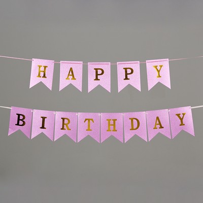 Γιρλάντα happy birthday σε ροζ χρώμα με χρυσά γράμματα. Διάσταση 3μ. Παράδοση σε 5-7 εργάσιμες μέρες. ΝΚ421