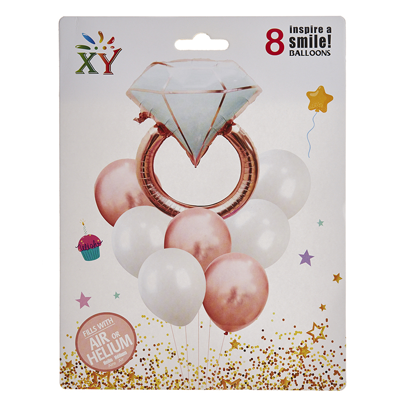 Μπαλόνια σετ 8 τεμαχίων διαμάντι. Αποτελείται απο ενα μπαλόνι διαμάντι σε διαστάσεις 60χ83 εκ. και 7 μπαλόνια απλά των 30εκ. Παράδοση σε 5-7 εργάσιμες μέρες. ΡΤ045