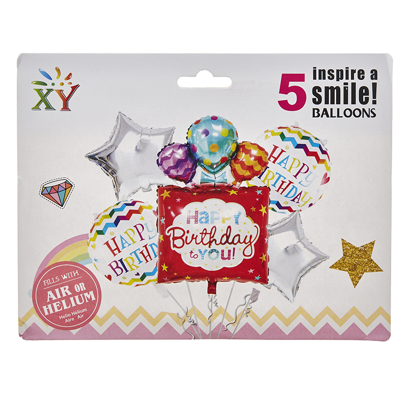 Μπαλόνια σετ 5 τεμαχίων happy birthday. Παράδοση σε 5-7 εργάσιμες μέρες. ΡΤ046