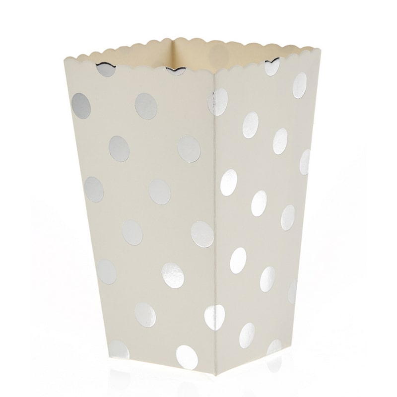 Κουτάκι ποπ-κορν χάρτινο πουά ασημί. Η τιμή αφορά το ενα τεμάχιο. Παράδοση σε 5-7 εργάσιμες μέρες.