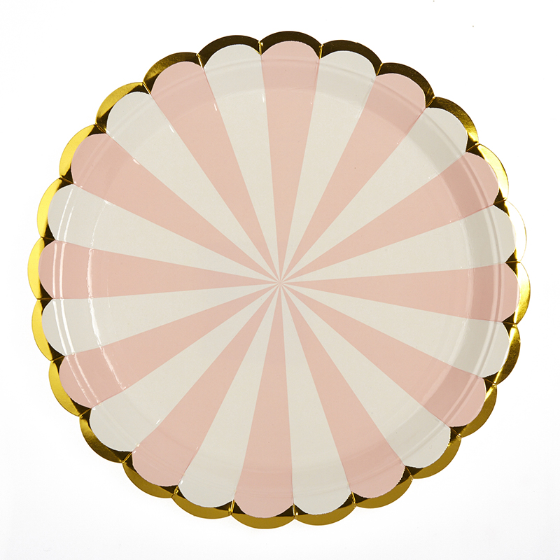 Χάρτινα πιάτα με ροζ ρίγες 23 εκ. Σετ 10 τμχ. Παράδοση σε 5-7 εργάσιμες μέρες.