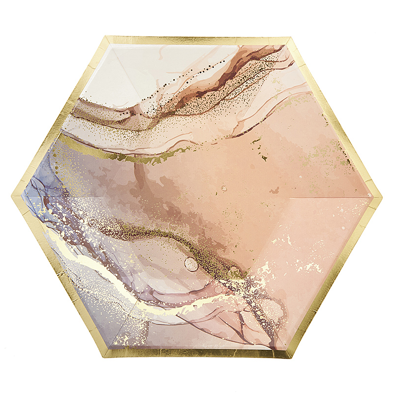 Χάρτινα πιάτα εξάγωνο σε ροζ μάρμαρο 23 εκ. Σετ 10 τμχ. Παράδοση σε 5-7 εργάσιμες μέρες.