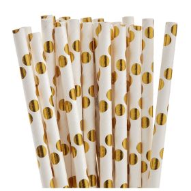 Χάρτινα καλαμάκια πουά χρυσό 25 τμχ. Παράδοση σε 5-7 εργάσιμες μέρες.