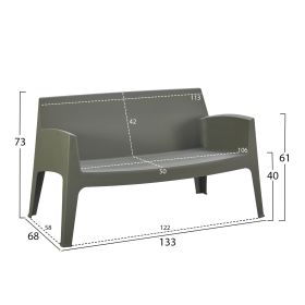 Ο SLEEK είναι ένας λιτός και στοιβαζόμενος 2θέσιος καναπές εξωτερικού χώρου σε χρώμα DARK OLIVE GREEN. Αποτελεί μια ιδανική πρόταση για χρήση σε χώρους, είτε επαγγελματικούς, είτε για το σπίτι.