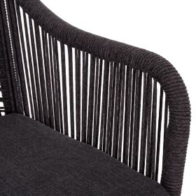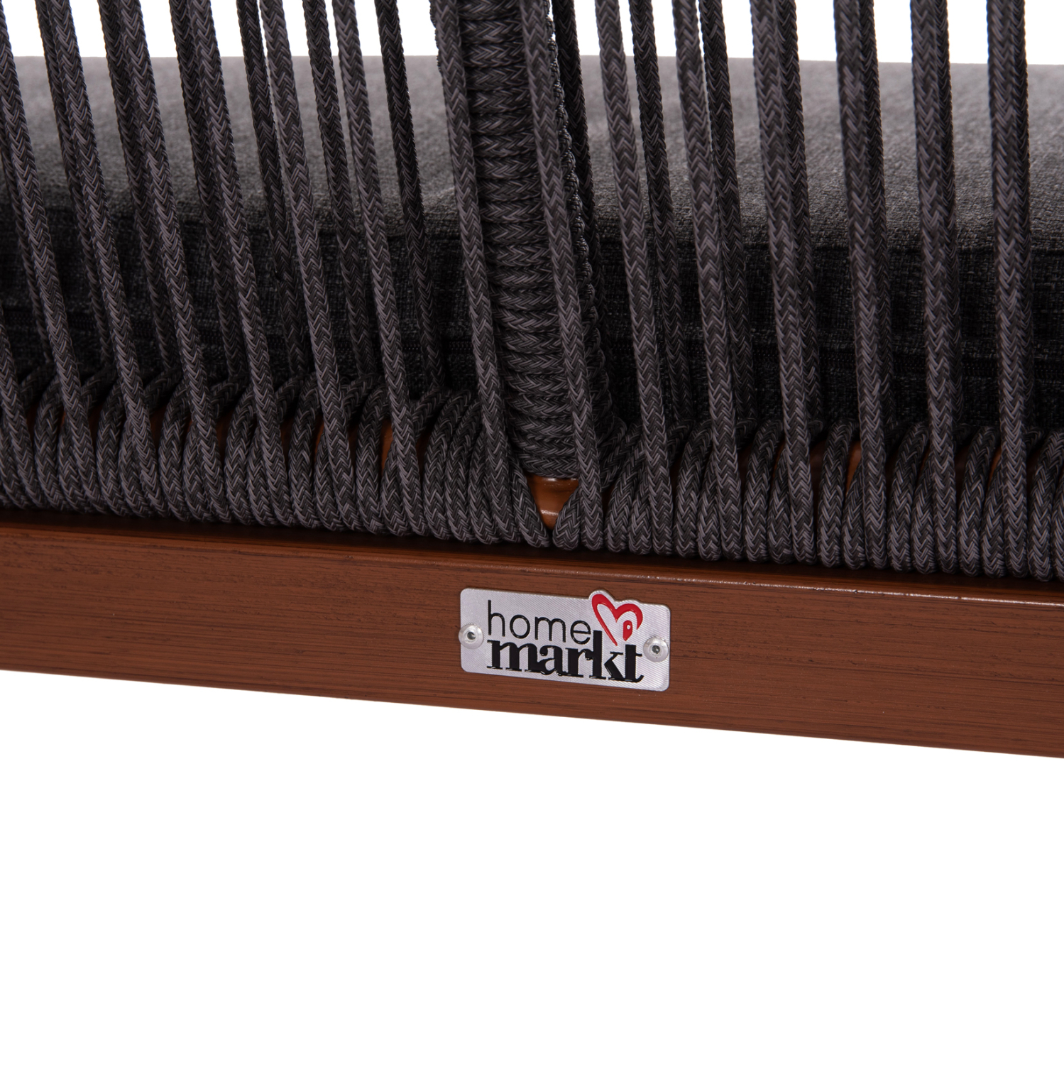 Ο 2-θέσιος καναπές εξωτερικού χώρου MYRTIA είναι εξαιρετικός και συνδυάζει τον σκελετό αλουμινίου σε ΚΑΦΕ χρώμα με το ΑΝΘΡΑΚΙ textilene σχοινί που διατρέχει πλεγμένο όλο τον καναπέ. Το μαξιλάρι καθίσματος είναι επενδυμένο με πολυεστερικό ύφασμα σε ΑΝΘΡΑΚΙ χρώμα. Χαρακτηριστικό γνώρισμα αυτού του καναπέ είναι ότι τα πόδια είναι ψηλά, με αποτέλεσμα και το ύψος του καθίσματος να είναι ψηλό.