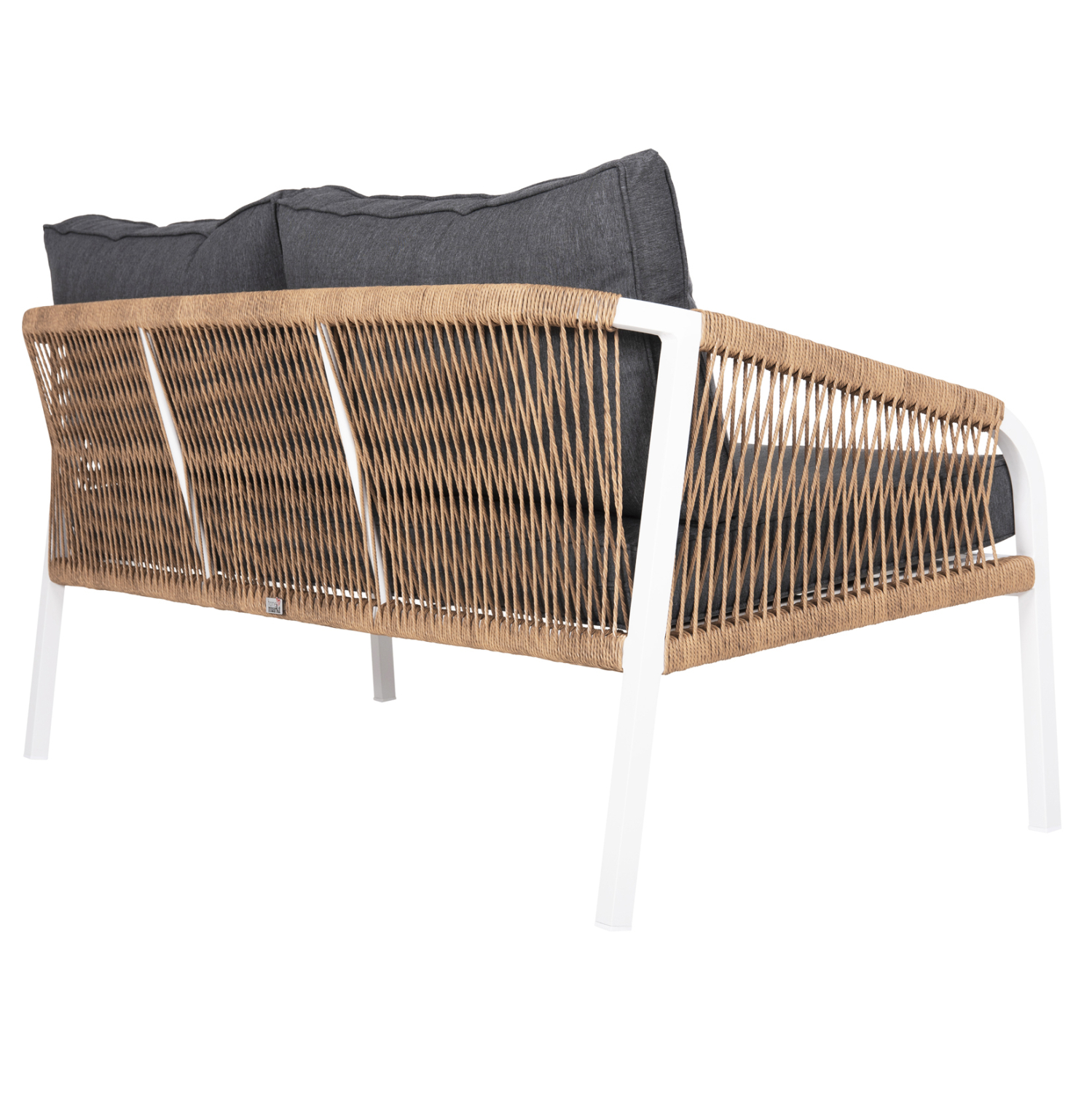 Σας παρουσιάζουμε τον MAERLY, έναν πανέμορφο 3θέσιο καναπέ εξωτερικού χώρου σε συνδυασμό ΛΕΥΚΟΥ-ΑΝΘΡΑΚΙ. Ο συνδυασμός του σκελετού αλουμινίου σε ΛΕΥΚΟ χρώμα με το ΣΚΟΥΡΟ ΜΠΕΖ συνθετικό σχοινί που διατρέχει πλεγμένο όλο τον καναπέ, καθώς και τα 2 μεγάλα μαξιλάρια πλάτης με πολυεστερικό ύφασμα σε ΑΝΘΡΑΚΙ χρώμα είναι μοναδικός, και μπορεί να αλλάξει άμεσα την εικόνα οποιουδήποτε εξωτερικού χώρου. Χαρακτηριστικό γνώρισμα αυτού του καναπέ είναι ότι τα πόδια είναι ψηλά, με αποτέλεσμα και το ύψος του καθίσματος να είναι ψηλό.