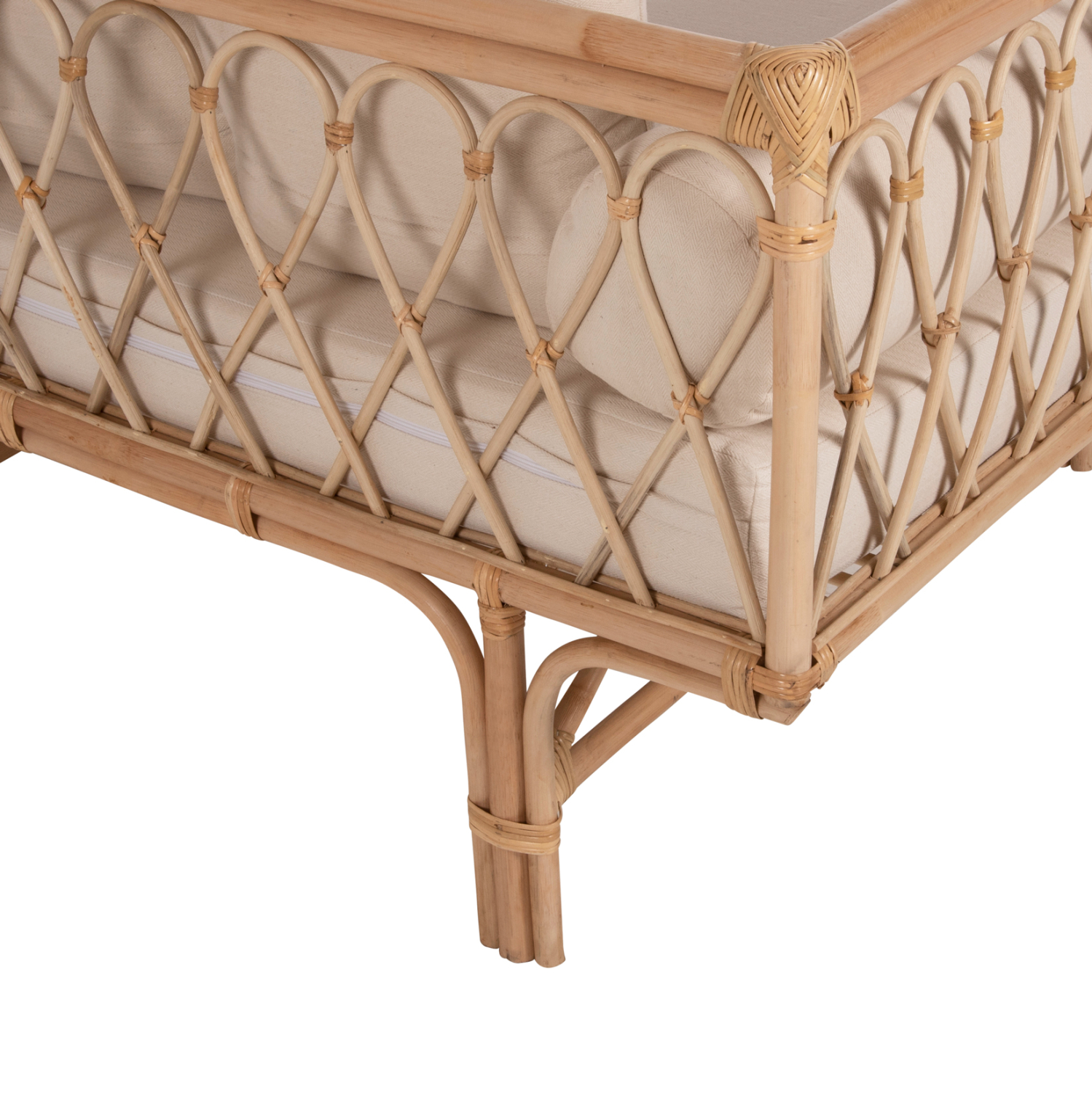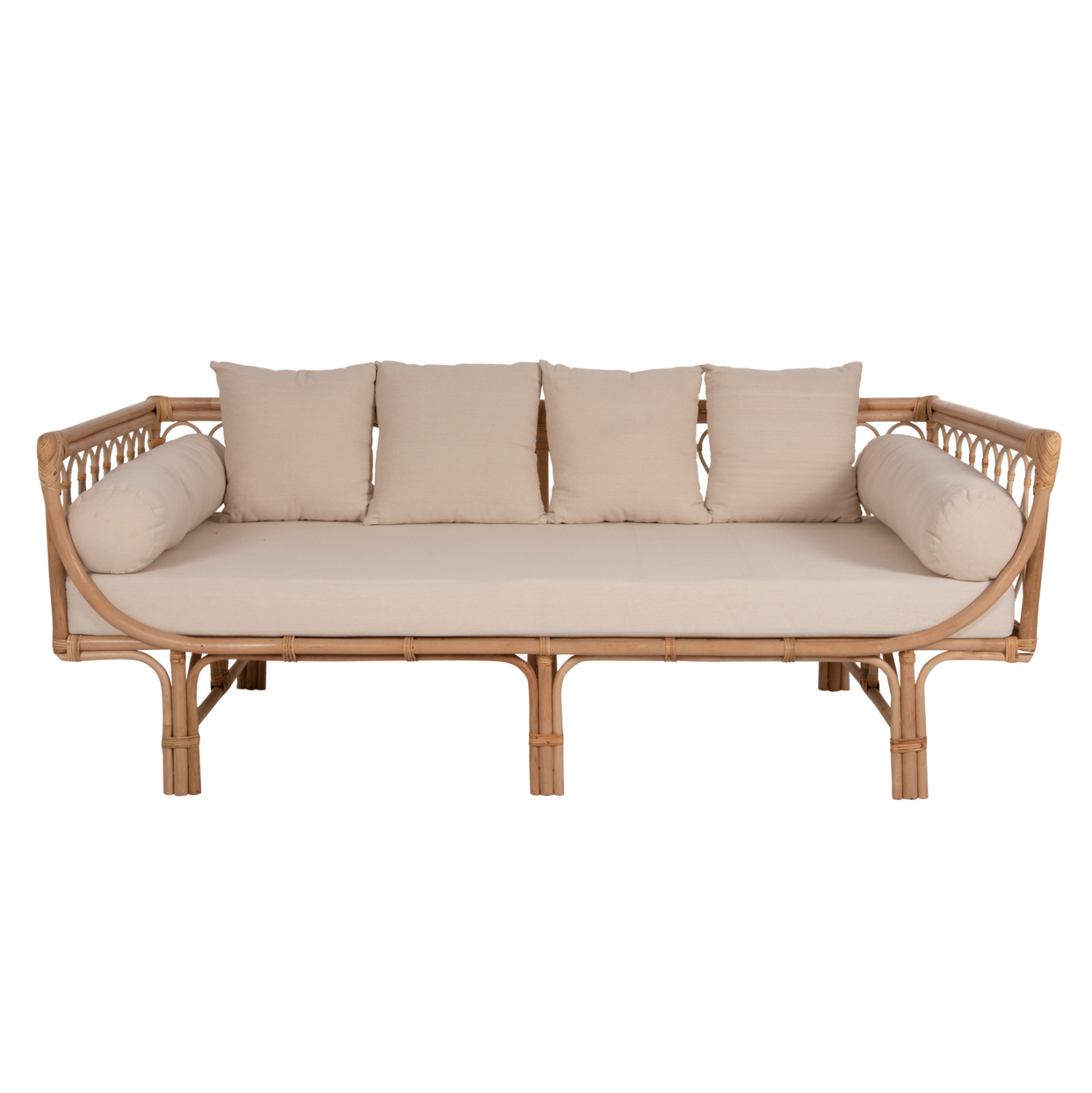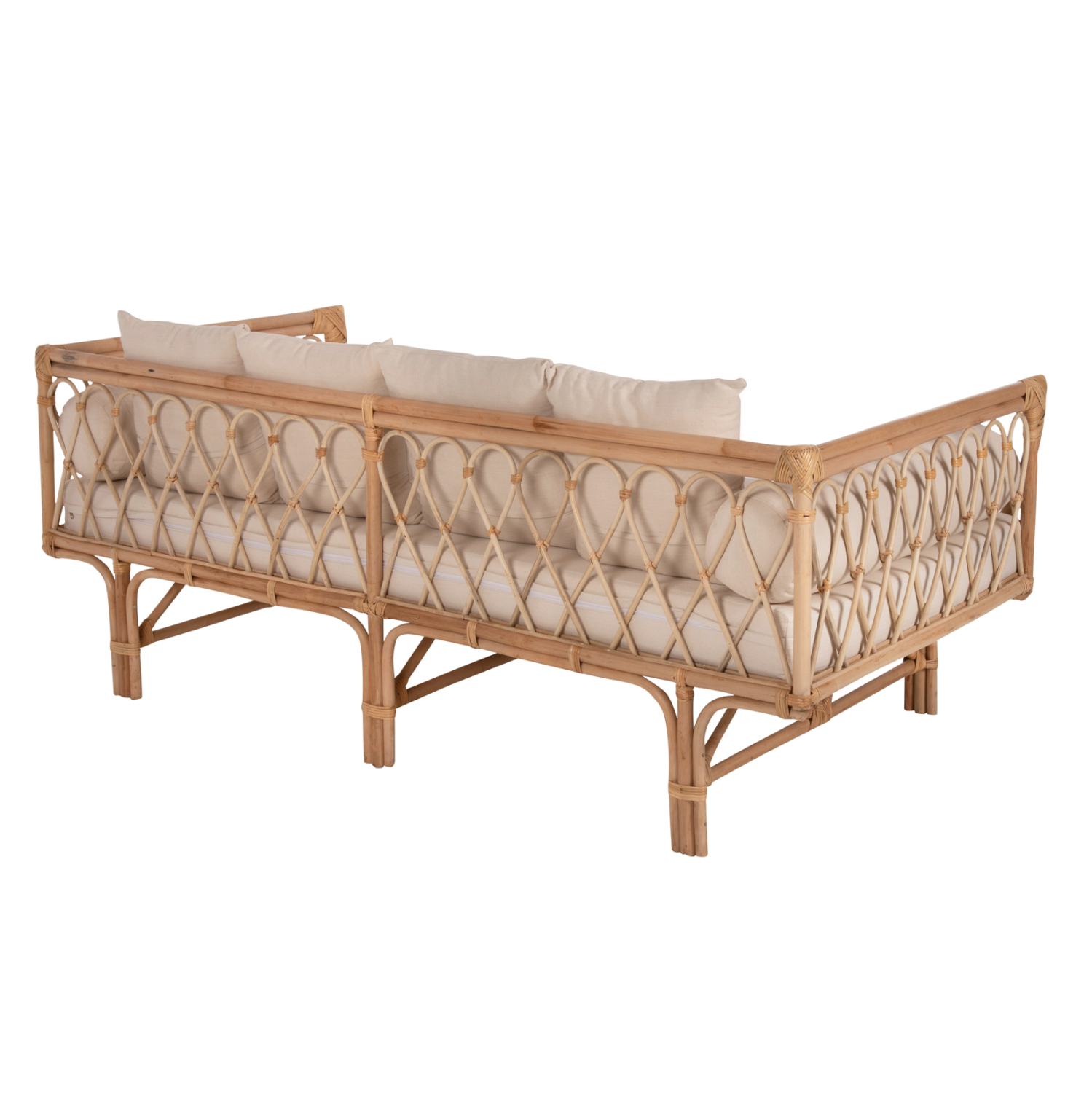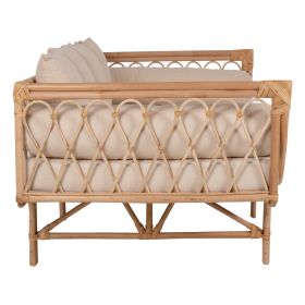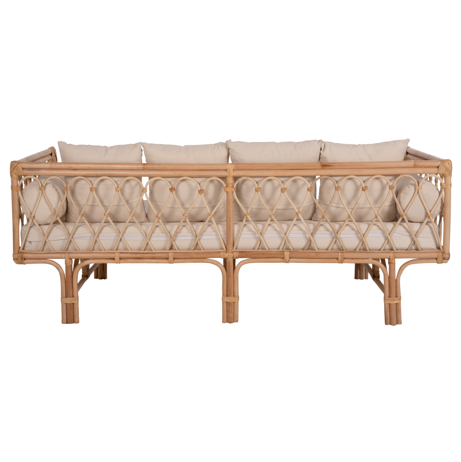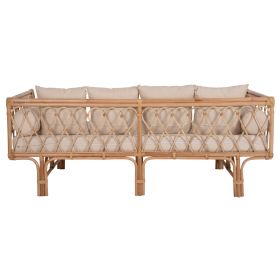 Ο καναπές είναι κατασκευασμένος από φυσικό Rattan. Το Rattan είναι το καλύτερο και το πιο ευρέως χρησιμοποιούμενο φυσικό υλικό για διάφορες κατασκευές. Το Rattan που καλλιεργείται στην Ν.Α. Ασία είναι το ποιοτικότερο και ανθεκτικότερο υλικό από παρόμοια που καλλιεργούνται σε άλλες περιοχές. Με περισσότερα από 600 διαφορετικά είδη, το RATTAN μπορεί να διακριθεί ως ένα ισχυρό ινώδες φυτό που μοιάζει με το μπαμπού και χρησιμοποιείται για ευρέως επειδή είναι ελαφρύ, ανθεκτικό, εύκαμπτο και ελκυστικό.