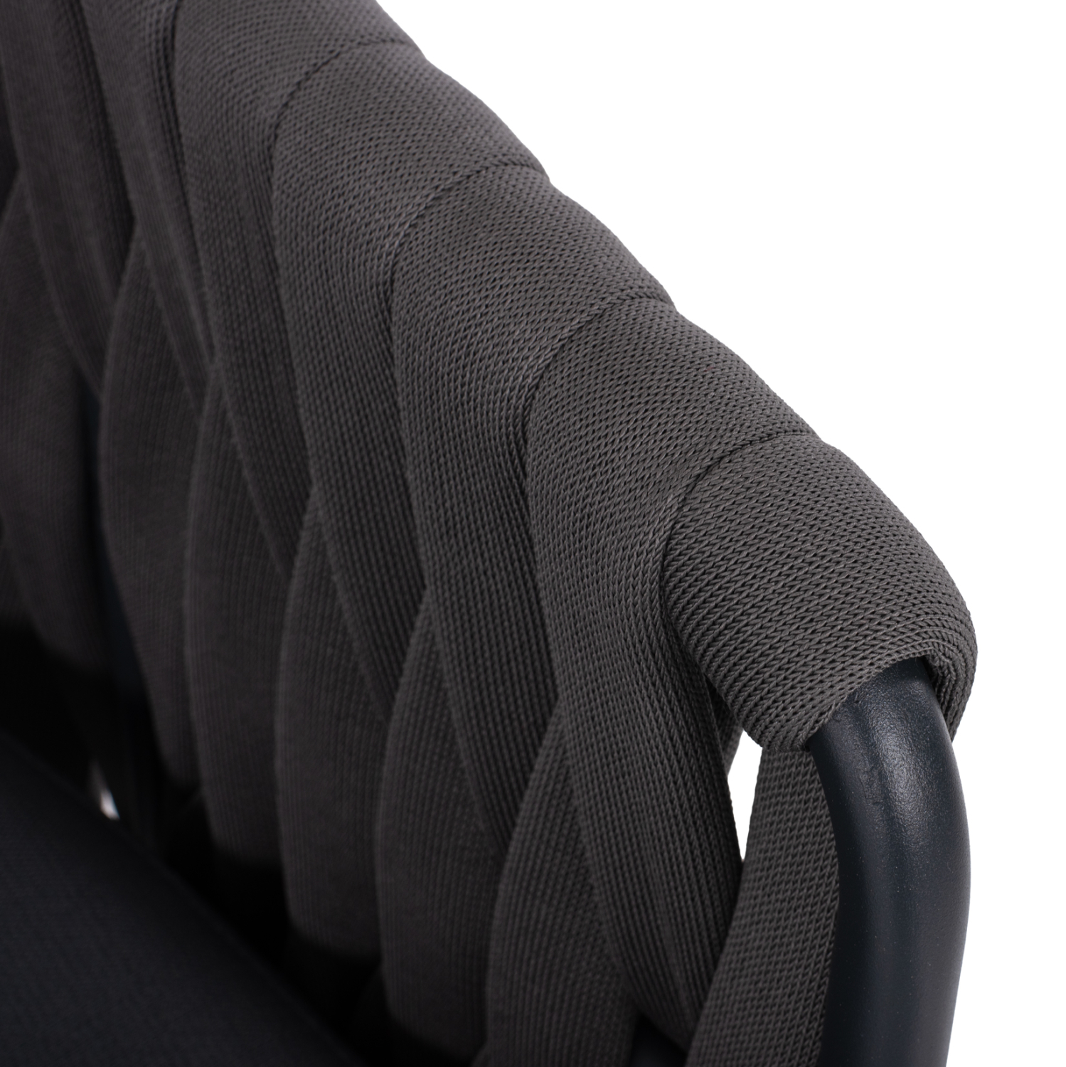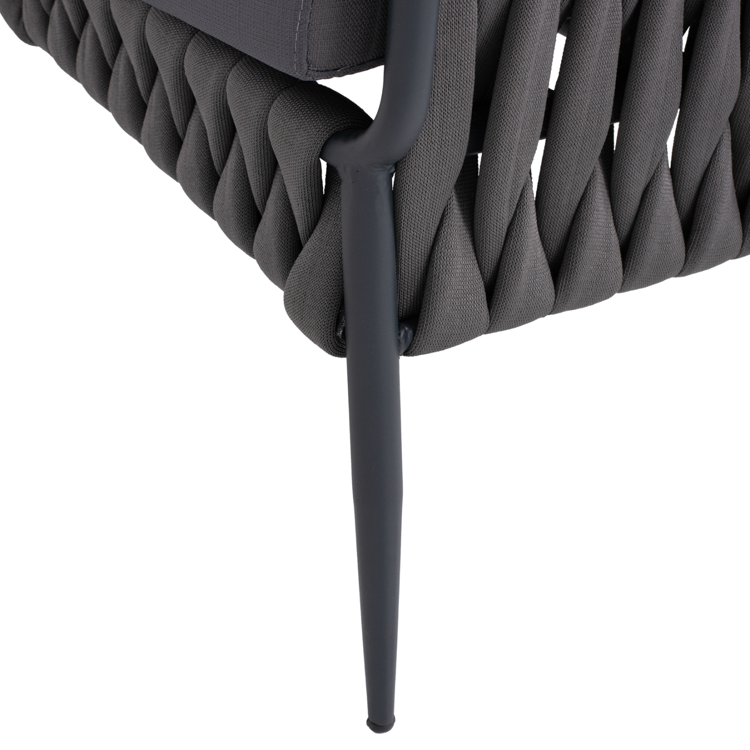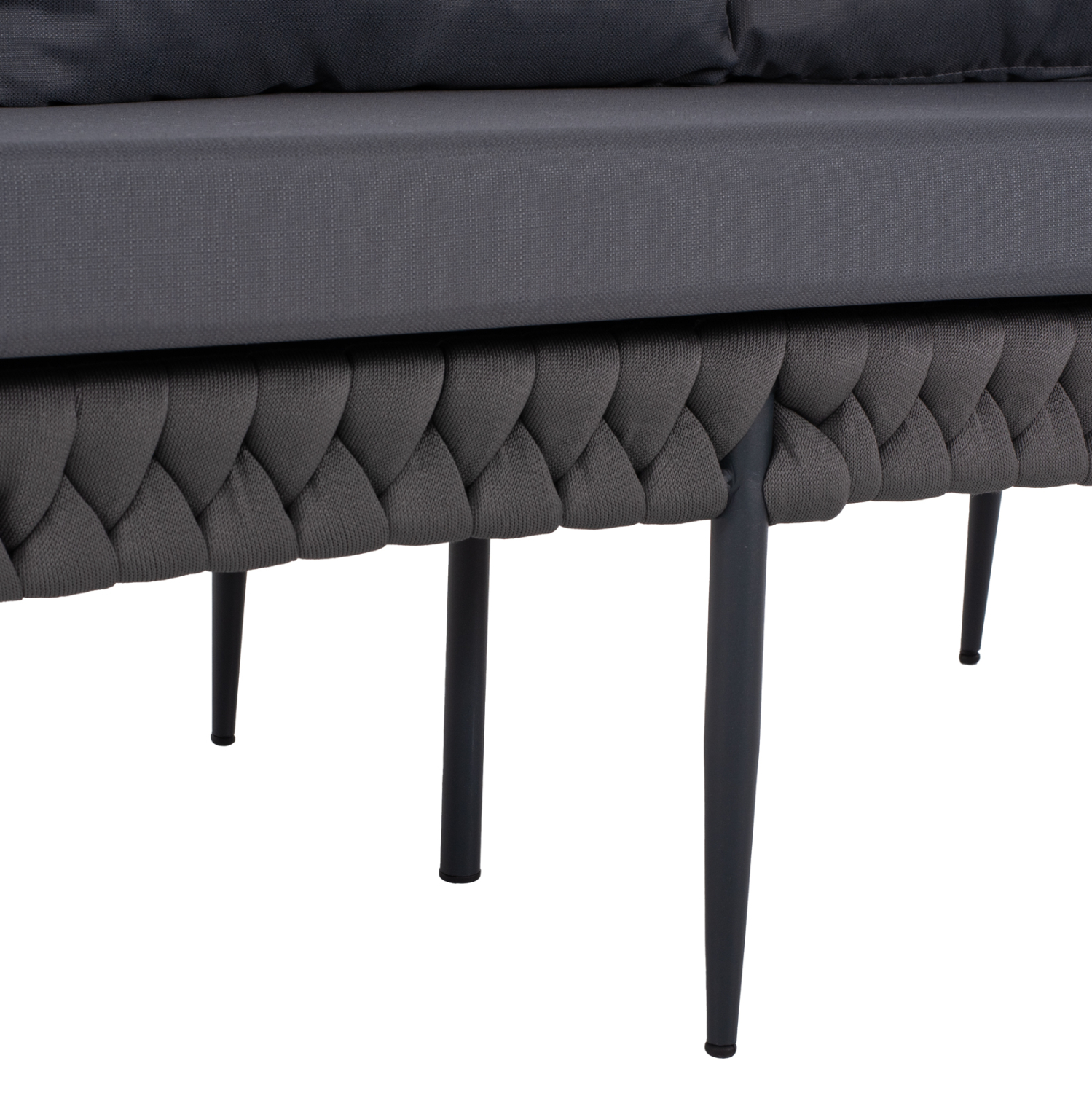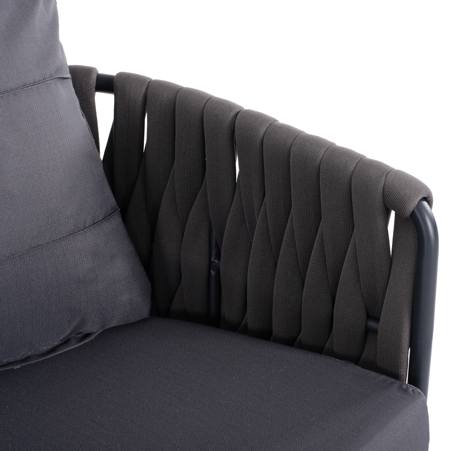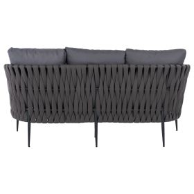 HM5924.10 --Σας παρουσιάζουμε έναν πανέμορφο 3θέσιο καναπέ στις αποχρώσεις του ΓΚΡΙ. Ο συνδυασμός του σκελετού αλουμινίου με το ΑΦΡΩΔΕΣ σχοινί που διατρέχει πλεγμένο όλο τον καναπέ, καθώς και τα 3 μεγάλα μαξιλάρια πλάτης είναι μοναδικός, και μπορεί να αλλάξει άμεσα την εικόνα οποιουδήποτε εξωτερικού χώρου. Χαρακτηριστικό γνώρισμα αυτού του καναπέ είναι ότι τα πόδια είναι ψηλά, με αποτέλεσμα και το ύψος του καθίσματος να είναι ψηλό.
