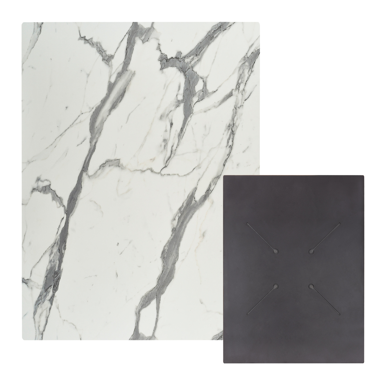 Ορθογώνια φαλτσοκομμένη επιφάνεια τραπεζιού σε ΛΕΥΚΟ ΜΑΡΜΑΡΟ χρώμα, η οποία είναι κατάλληλη για επαφή με τρόφιμα και γενικά το υλικό είναι φιλικό προς το περιβάλλον. Μπορεί να χρησιμοποιηθεί σε πληθώρα χώρων όπως καφετέριες, εστιατόρια, και τουριστικά καταλύματα, είτε σε εσωτερικούς, είτε σε εξωτερικούς χώρους.