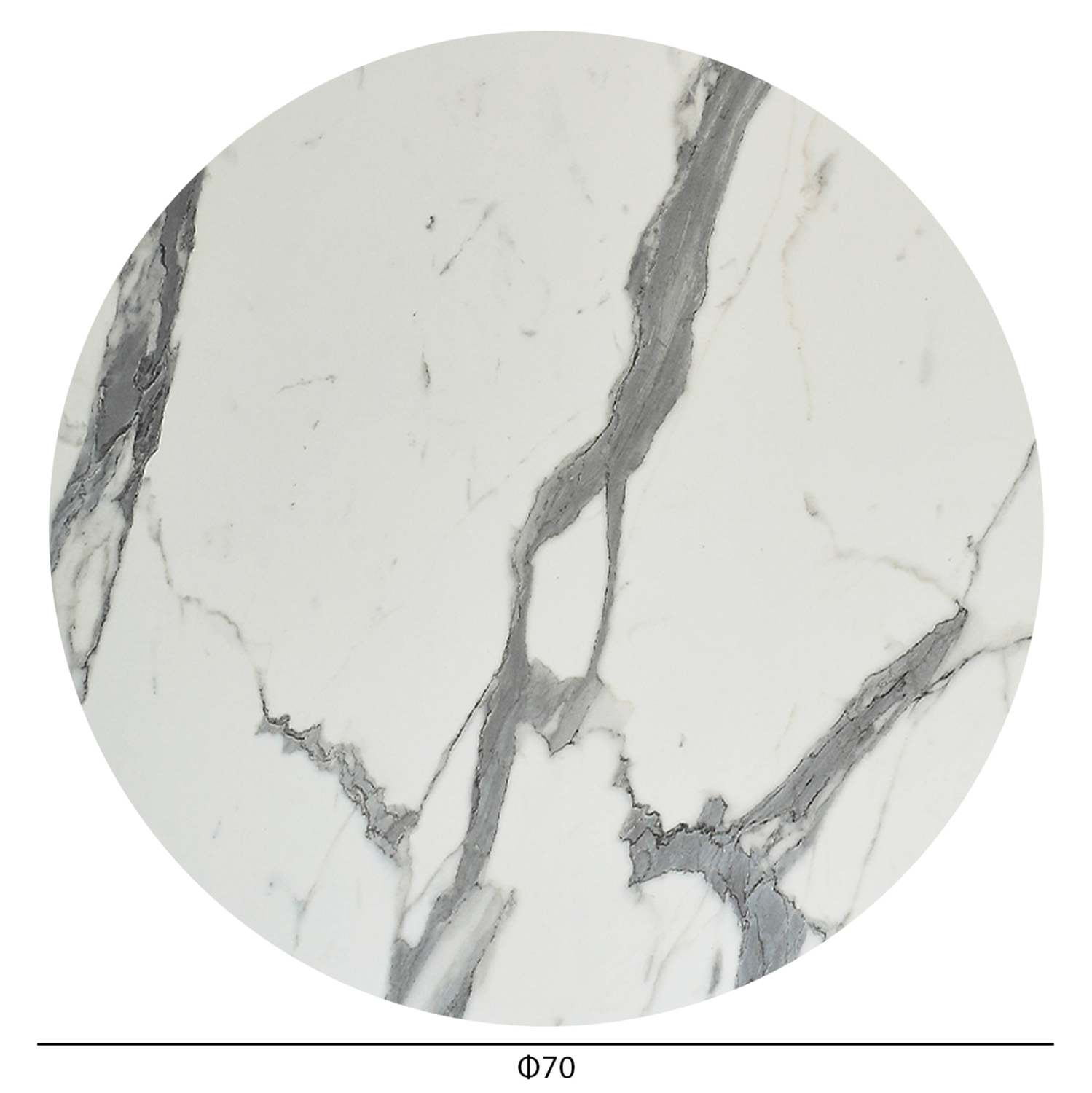Στρογγυλή φαλτσοκομμένη επιφάνεια τραπεζιού σε ΛΕΥΚΟ ΜΑΡΜΑΡΟ χρώμα, η οποία είναι κατάλληλη για επαφή με τρόφιμα και γενικά το υλικό είναι φιλικό προς το περιβάλλον. Μπορεί να χρησιμοποιηθεί σε πληθώρα χώρων όπως καφετέριες, εστιατόρια, και τουριστικά καταλύματα, είτε σε εσωτερικούς, είτε σε εξωτερικούς χώρους.