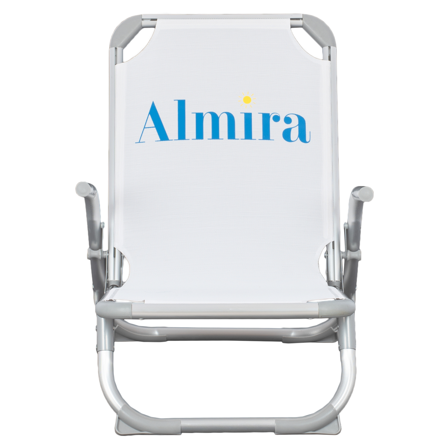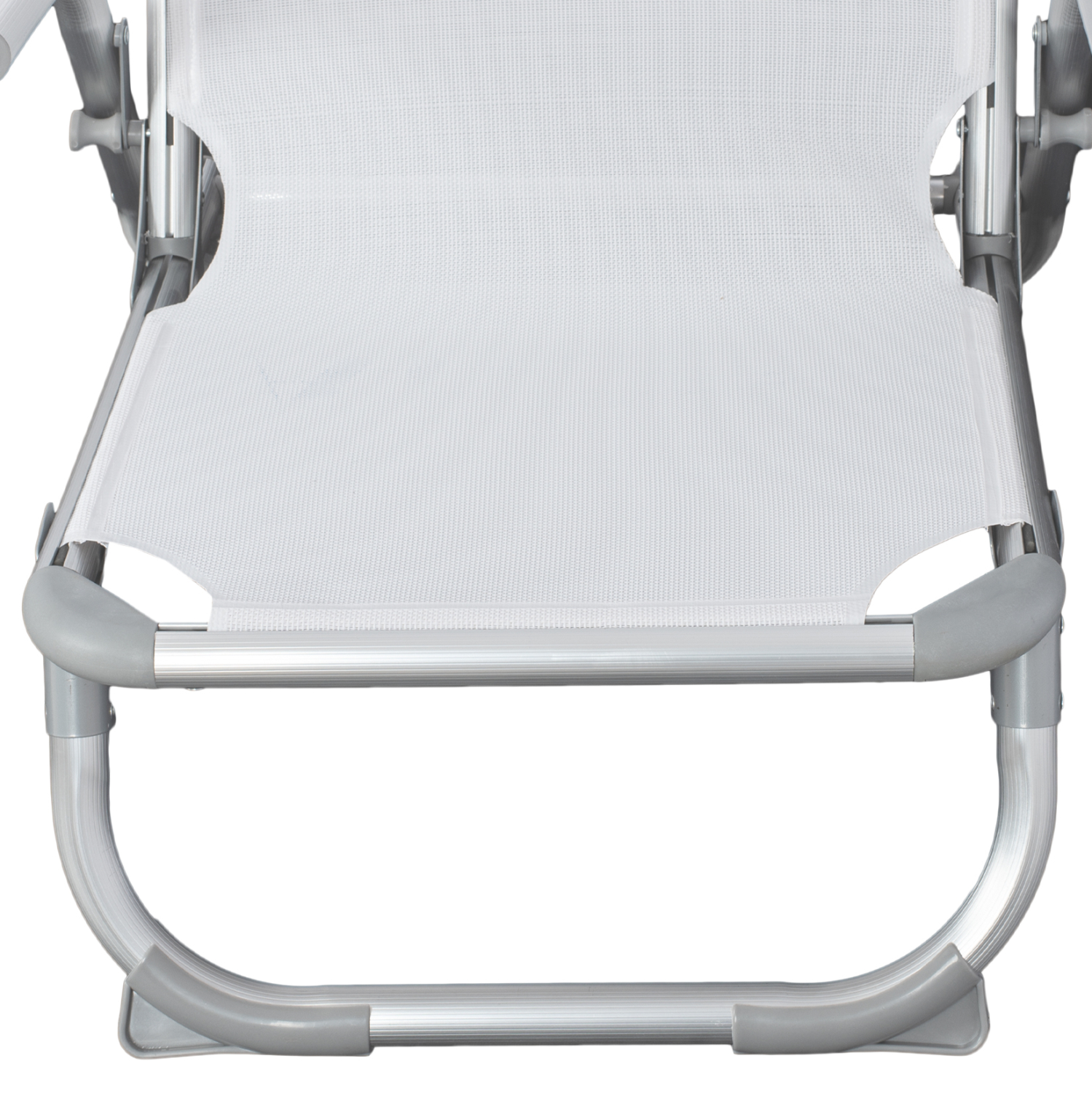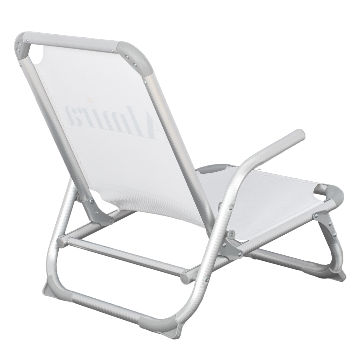 Καρεκλάκι παραλίας ΒΑΡΕΩΣ ΤΥΠΟΥ από αλουμίνιο με ψηλή πλάτη σε λευκή απόχρωση.