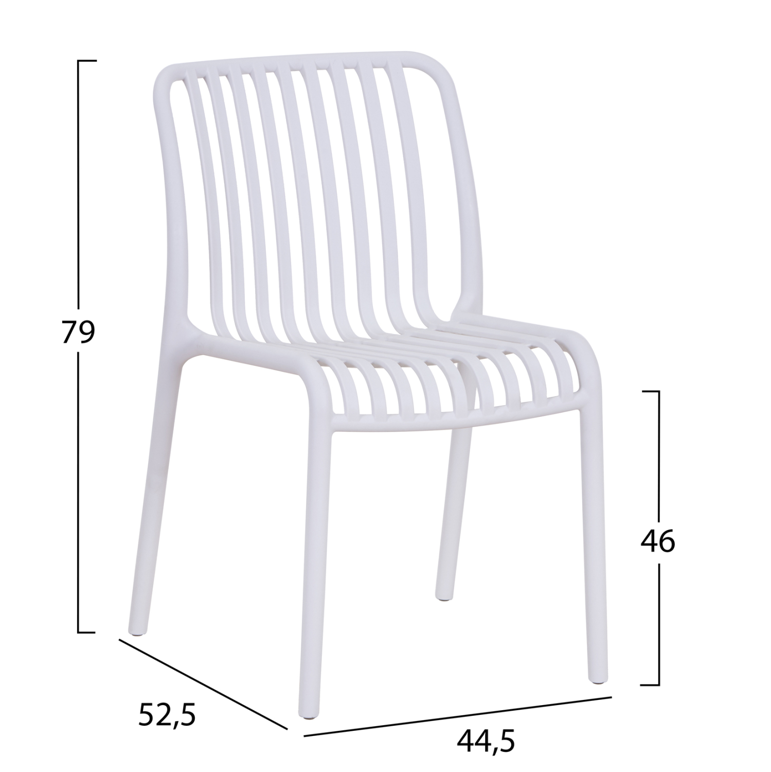 Η καρέκλα CONVEE είναι μια κλασσική καρέκλα εξωτερικού χώρου που θα καλύψει κάθε σας ανάγκη στην αυλή ή το μπαλκόνι σας. Είναι ποιοτική και κομψή στην όψη, ενώ το καμπυλωτό κάθισμα στο μπροστά μέρος την καθιστά αναπαυτικότατη, και σίγουρα τραβάει τα βλέμματα. Όλη η καρέκλα είναι από δοκούς πολυπροπυλενίου σε ΛΕΥΚΟ χρώμα. Είναι στοιβαζόμενη, ελαφριά και άνετη, ιδανική επιλογή και για επαγγελματική χρήση, όπως σε catering κτλ.