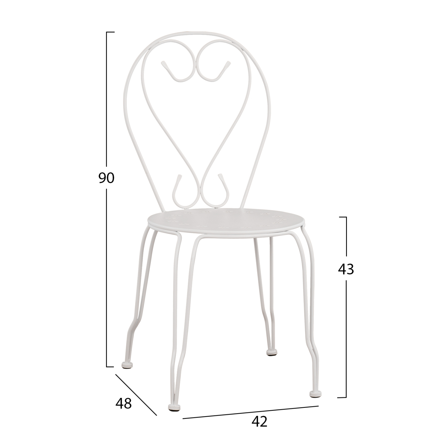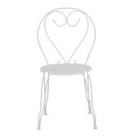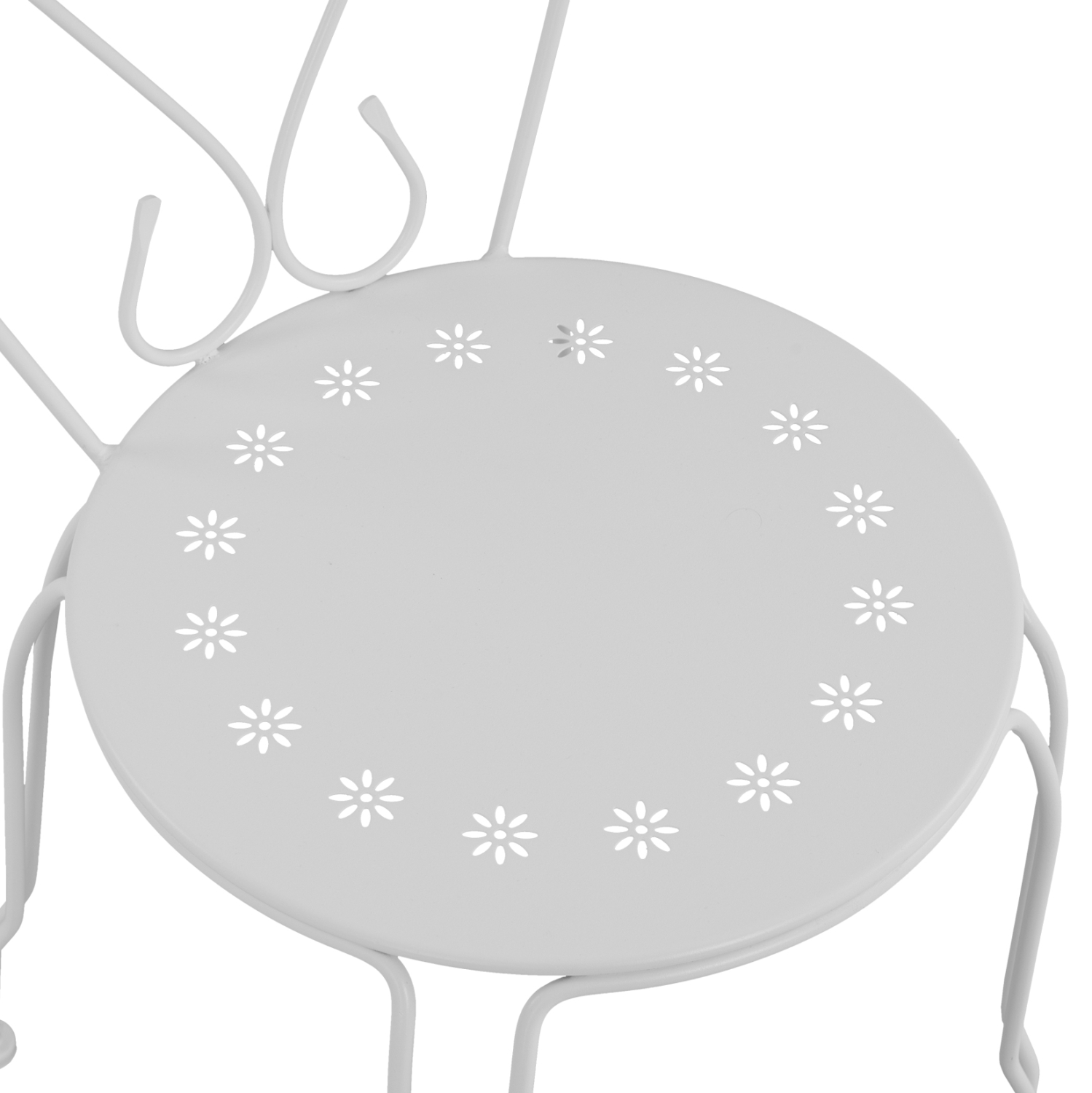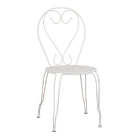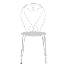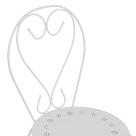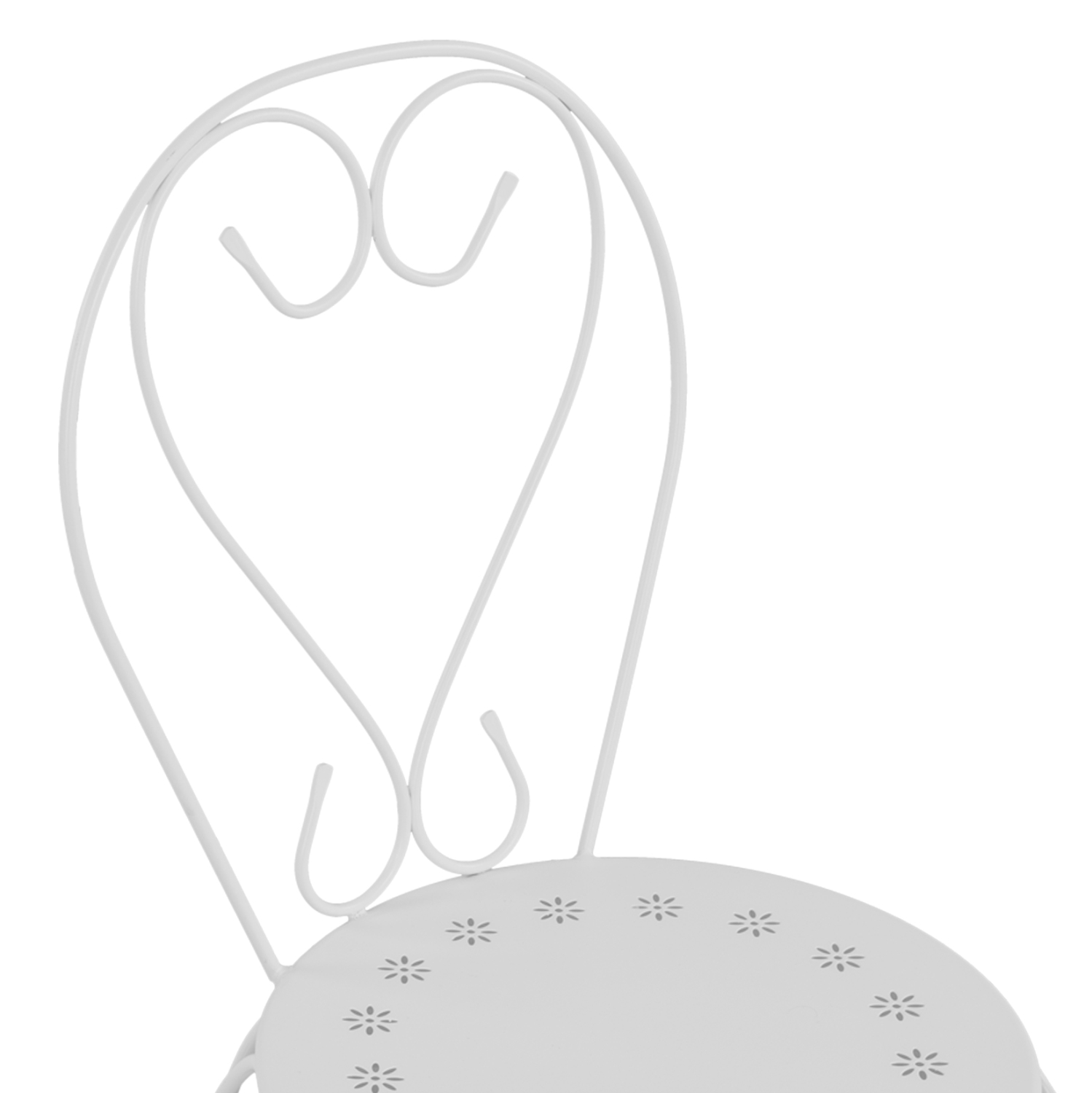 Μεταλλική καρέκλα εξωτερικού χώρου σε λευκή απόχρωση όπου στην βάση υπάρχει σχέδιο με λουλούδια.