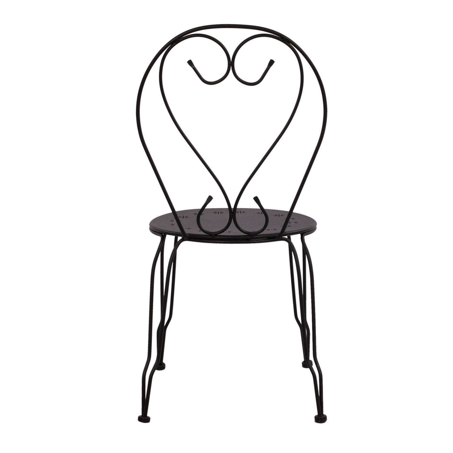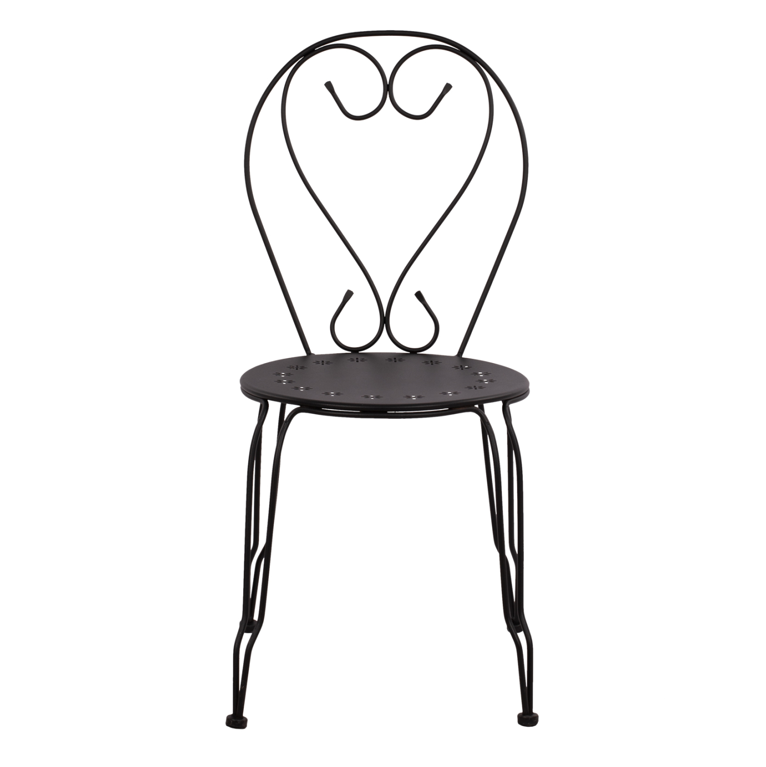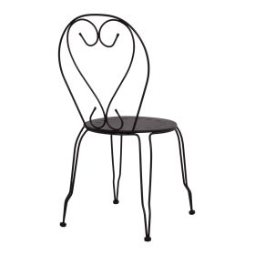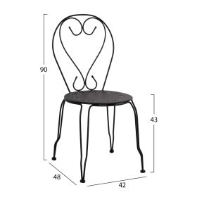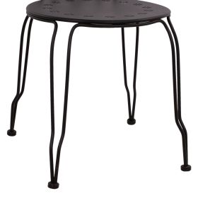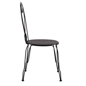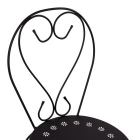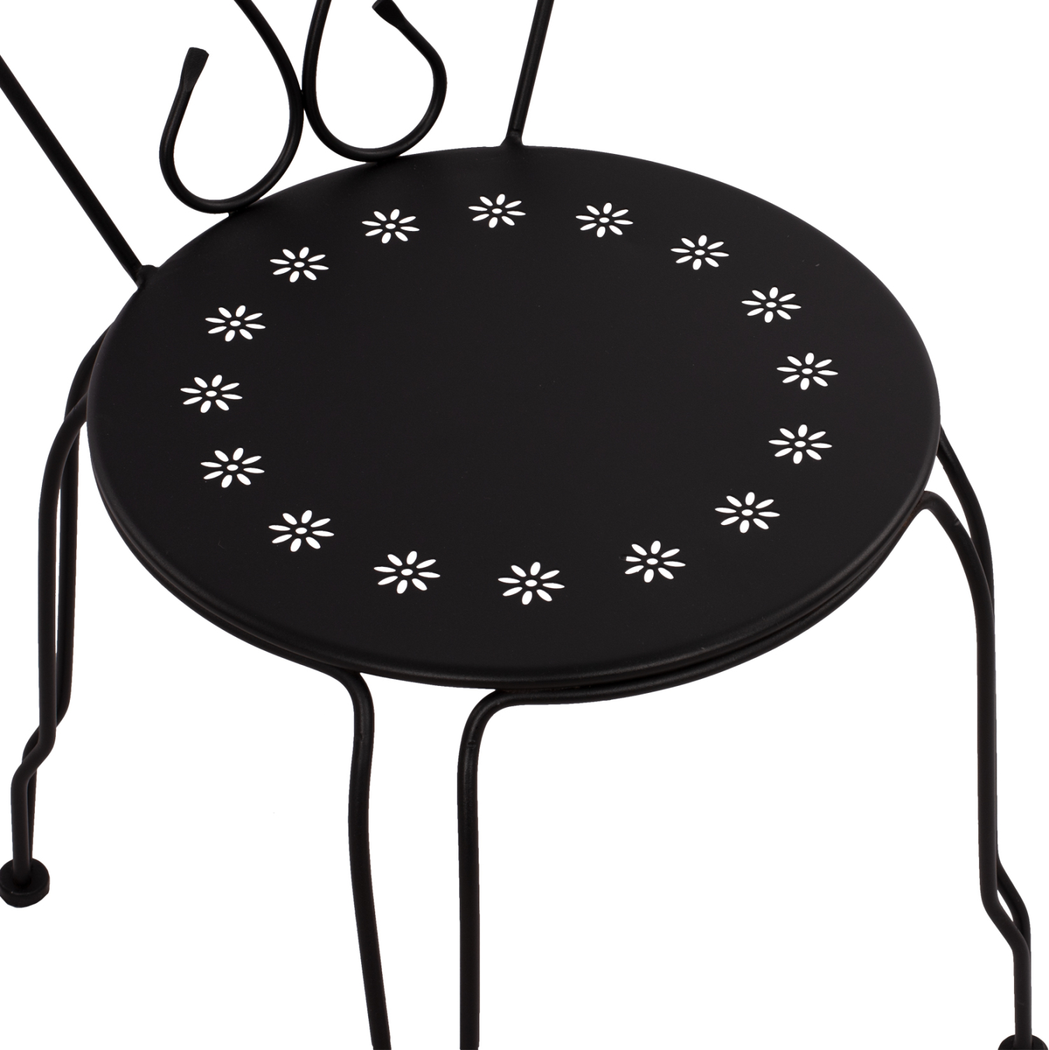 Μεταλλική καρέκλα εξωτερικού χώρου σε μαύρη απόχρωση όπου στην βάση υπάρχει σχέδιο με λουλούδια.