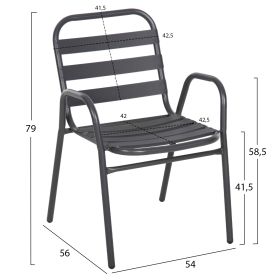 Η καρέκλα εξωτερικού χώρου PRELUDE είναι κατασκευασμένη από μέταλλο και αλουμίνιο σε ΓΚΡΙ χρώμα. Ο σκελετός της είναι μεταλλικός, ενώ η πλάτη και το κάθισμα αποτελούνται από «φέτες» αλουμινίου. Σχεδιαστικά, είναι λιτή με όμορφες καμπύλες και χαμηλά μπράτσα, ενώ το γεγονός ότι είναι ελαφριά και ΣΤΟΙΒΑΖΟΜΕΝΗ την κάνει ιδιαιτέρως πρακτική αφού μπορείτε να την αποθηκεύσετε εύκολα στον μικρότερο δυνατό χώρο.