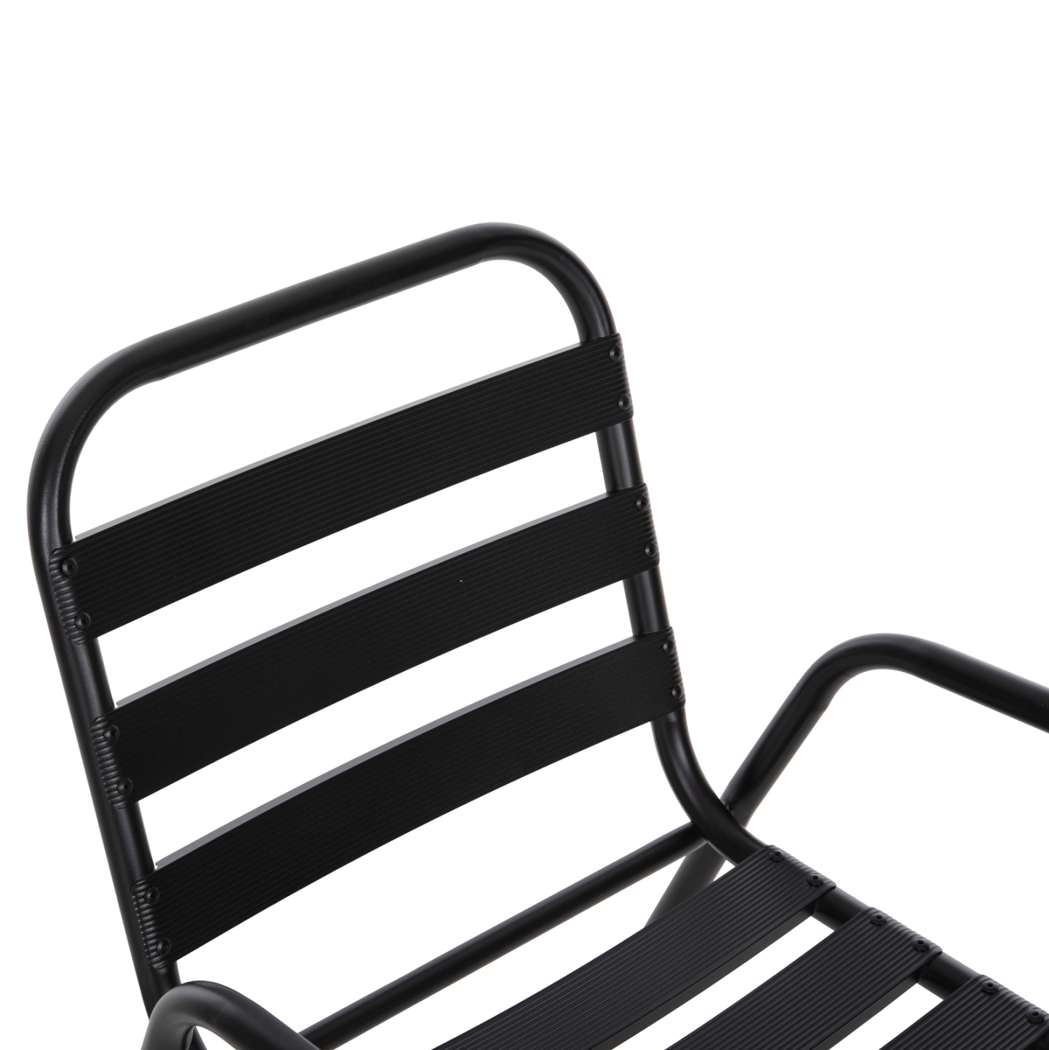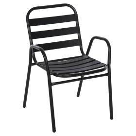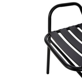 Η καρέκλα εξωτερικού χώρου PRELUDE είναι κατασκευασμένη από μέταλλο και αλουμίνιο σε ΜΑΥΡΟ χρώμα. Ο σκελετός της είναι μεταλλικός, ενώ η πλάτη και το κάθισμα αποτελούνται από «φέτες» αλουμινίου. Σχεδιαστικά, είναι λιτή με όμορφες καμπύλες και χαμηλά μπράτσα, ενώ το γεγονός ότι είναι ελαφριά και ΣΤΟΙΒΑΖΟΜΕΝΗ την κάνει ιδιαιτέρως πρακτική αφού μπορείτε να την αποθηκεύσετε εύκολα στον μικρότερο δυνατό χώρο.