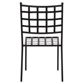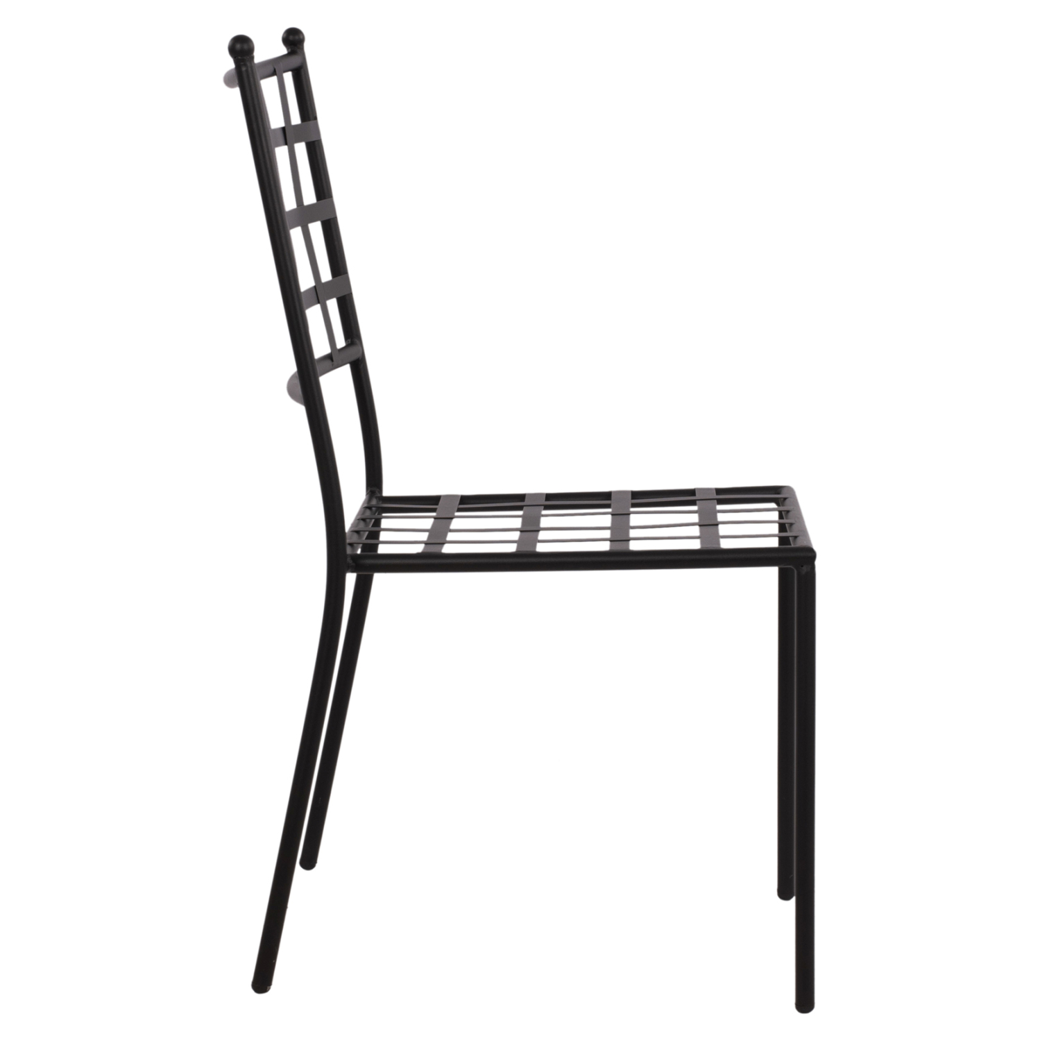 Στιβαρή και μεγάλης αντοχής μεταλλική καρέκλα σε μαύρη απόχρωση, ιδανική για εξωτερικούς χώρους.