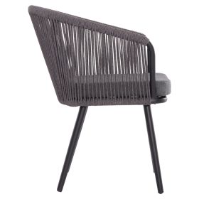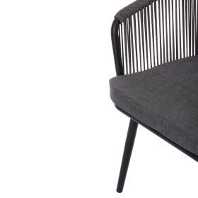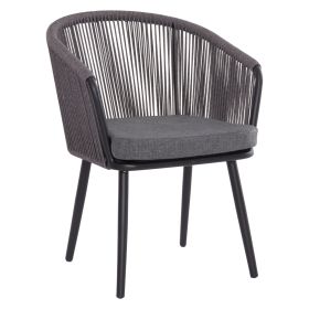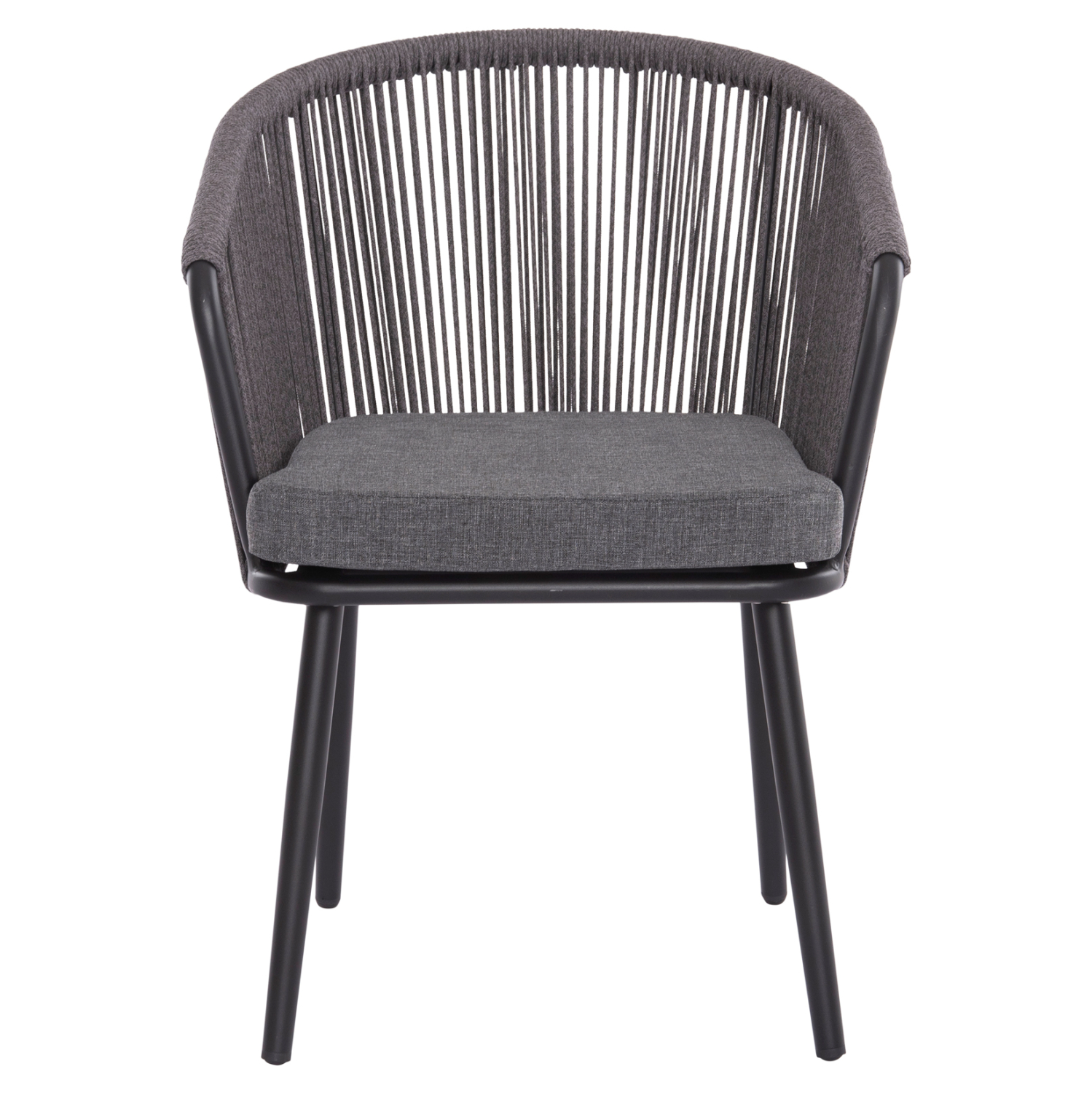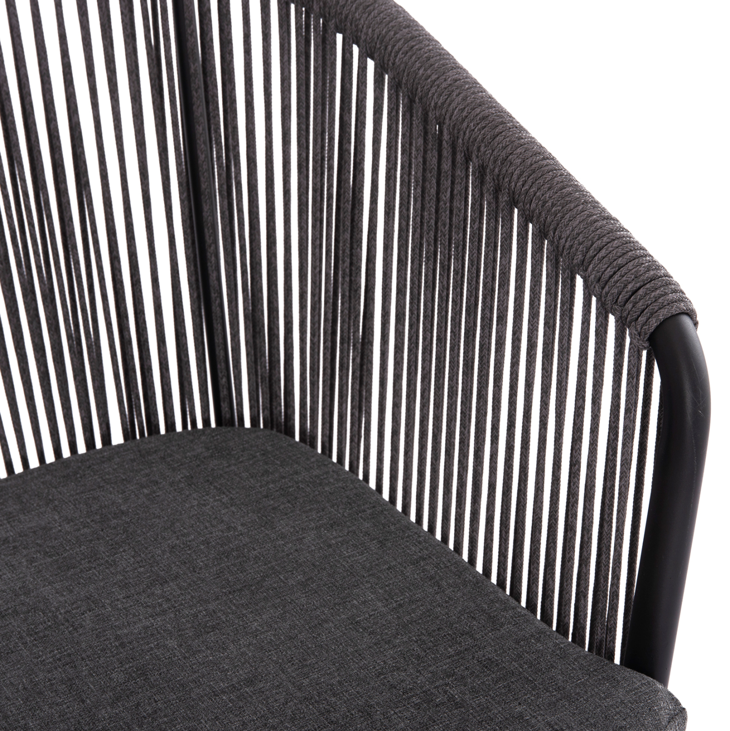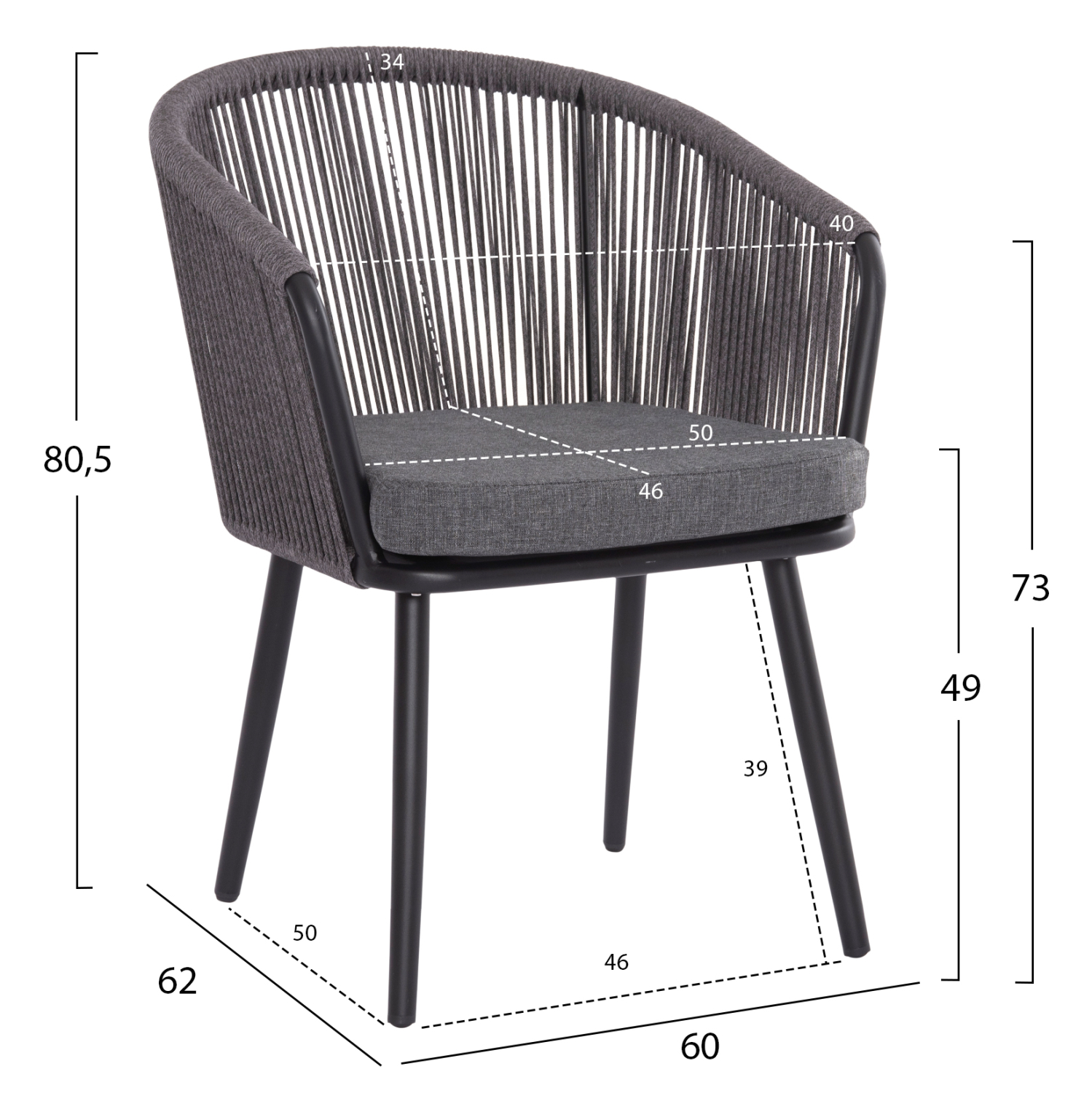 Η πολυθρόνα τραπεζαρίας HARRIET, κυρίως για επαγγελματική χρήση, είναι μοντέρνα, άνετη και σταθερή. Ο σχεδιασμός της που αγκαλιάζει το σώμα με το ανθρακί σχοινί επάνω στην ημικυκλική ΜΑΥΡΗ αλουμινένια κατασκευή με κλίση στα μπράτσα, θα αναβαθμίσει αισθητικά τον χώρο που θα την τοποθετήσετε σε συνδυασμό με ένα ταιριαστό τραπέζι. Επίσης, το μαξιλάρι σε ίδια απόχρωση συμπληρώνει ιδανικά την πολυθρόνα.